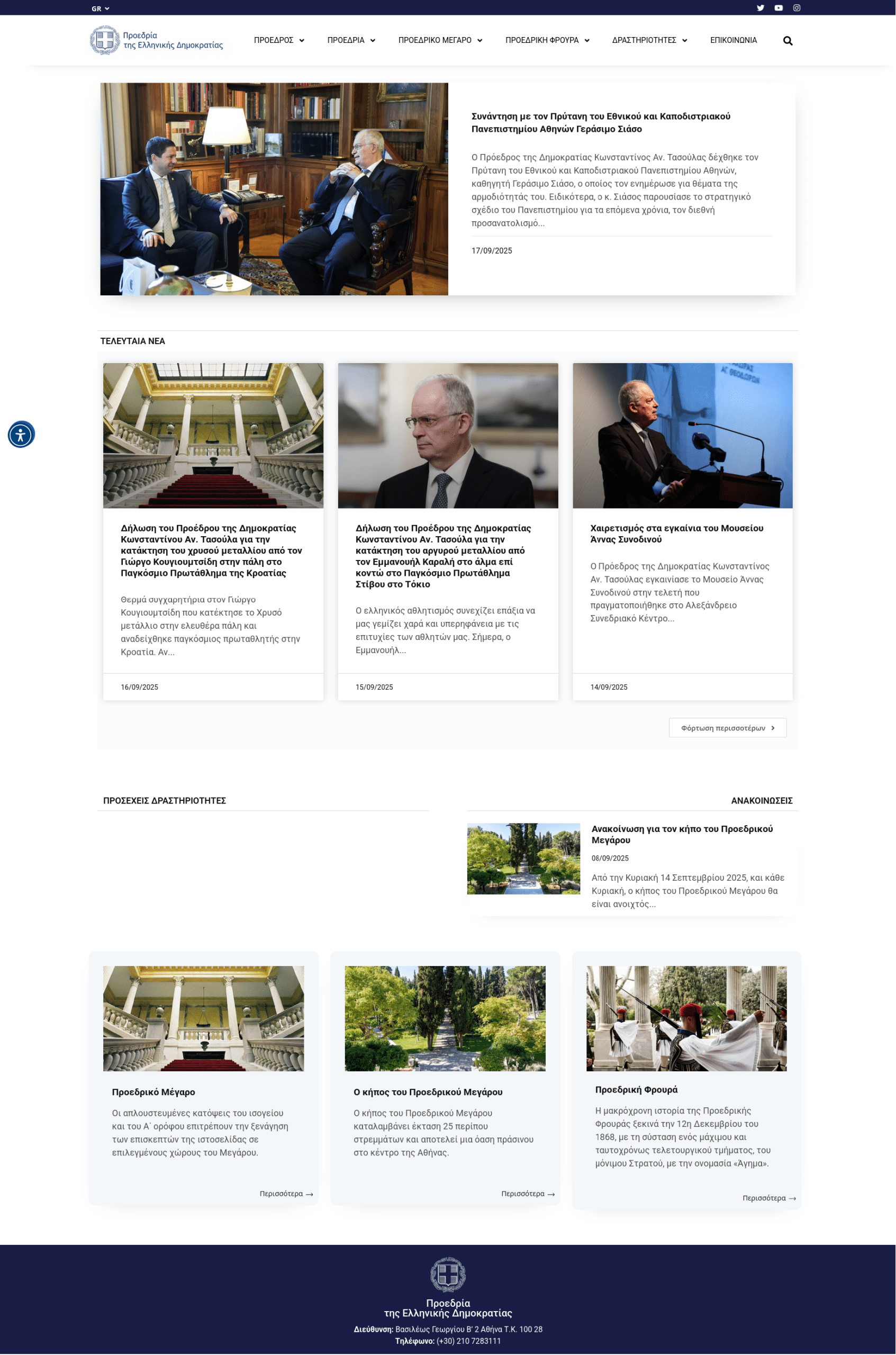 The president of Greece, officially the president of the Hellenic Republic (Greek: Πρόεδρος της Ελληνικής Δημοκρατίας, romanized: Próedros tis Ellinikís Dimokratías), commonly referred to in Greek as the president of the Republic (Πρόεδρος της Δημοκρατίας, Próedros tis Dimokratías, ΠτΔ), is the head of state of Greece. The president is elected by the Hellenic Parliament; the role has been mainly ceremonial since the 1986 constitutional reform. The office was formally established by the Constitution of Greece in 1975, but has antecedents in the Second Hellenic Republic of 1924–1935 and the Greek junta in 1973–1974 which predated the transition to the current Third Hellenic Republic.