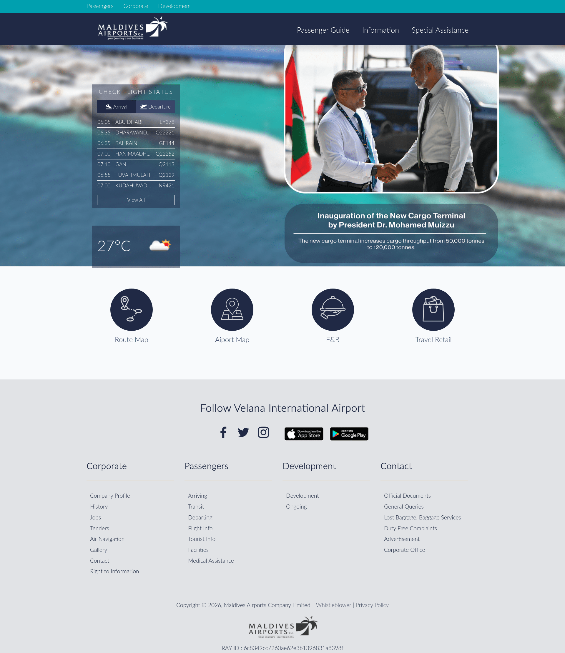 މާލޭ-ވެލާނާ އިންޓަނޭޝަނަލް އެއާޕޯޓް (އައިއޭޓީއޭ: އެމްއެލްއީ، އައިސީއޭއޯ: ވީއާރުއެމްއެމް) ގެ ނަމުން ވެސް ނަންދެވިފައިވާ ވެލާނާ އިންޓަނޭޝަނަލް އެއާޕޯޓް (ވީއައިއޭ) އަކީ މޯލްޑިވްސްގެ މައި ބައިނަލްއަގްވާމީ އެއާޕޯޓެވެ. އެއީ މާލެ އަތޮޅުގެ ދެކުނުގައި (ނުވަތަ ކާފު އަތޮޅު) ހުޅުލޭ އައިލެންޑްގައި، ވެރިރަށް މާލޭ ޖަޒީރާއާ ކައިރީގަ އެވެ. ދުނިޔޭގެ ބޮޑެތި އެއާޕޯޓްތަކާ ރަނގަޅަށް ގުޅިފައިވާ މި އެއާޕޯޓަކީ ގިނައިން ޓޫރިސްޓުންނަށް މޯލްޑިވްސް އަށް ވަންނަ މައި ދޮރުގެ ގޮތުގައި ހިދުމަތް ކުރާ އެއާޕޯޓެކެވެ. އެއީ މާލީ ގޮތުންނާއި އިދާރީ ގޮތުން ހިންގާ ކުންފުންޏެއް ކަމަށްވާ މޯލްޑިވްސް އެއާޕޯޓްސް ކޮމްޕެނީ ލިމިޓެޑް (އެމްއޭސީއެލް) އިންނެވެ.