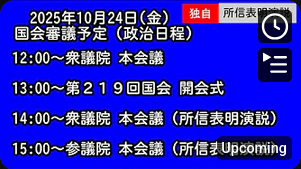 2025年10月24日(金) #国会中継 #第218回国会 #開会式 #所信表明演説 #参議院 #衆議院 #国会2025