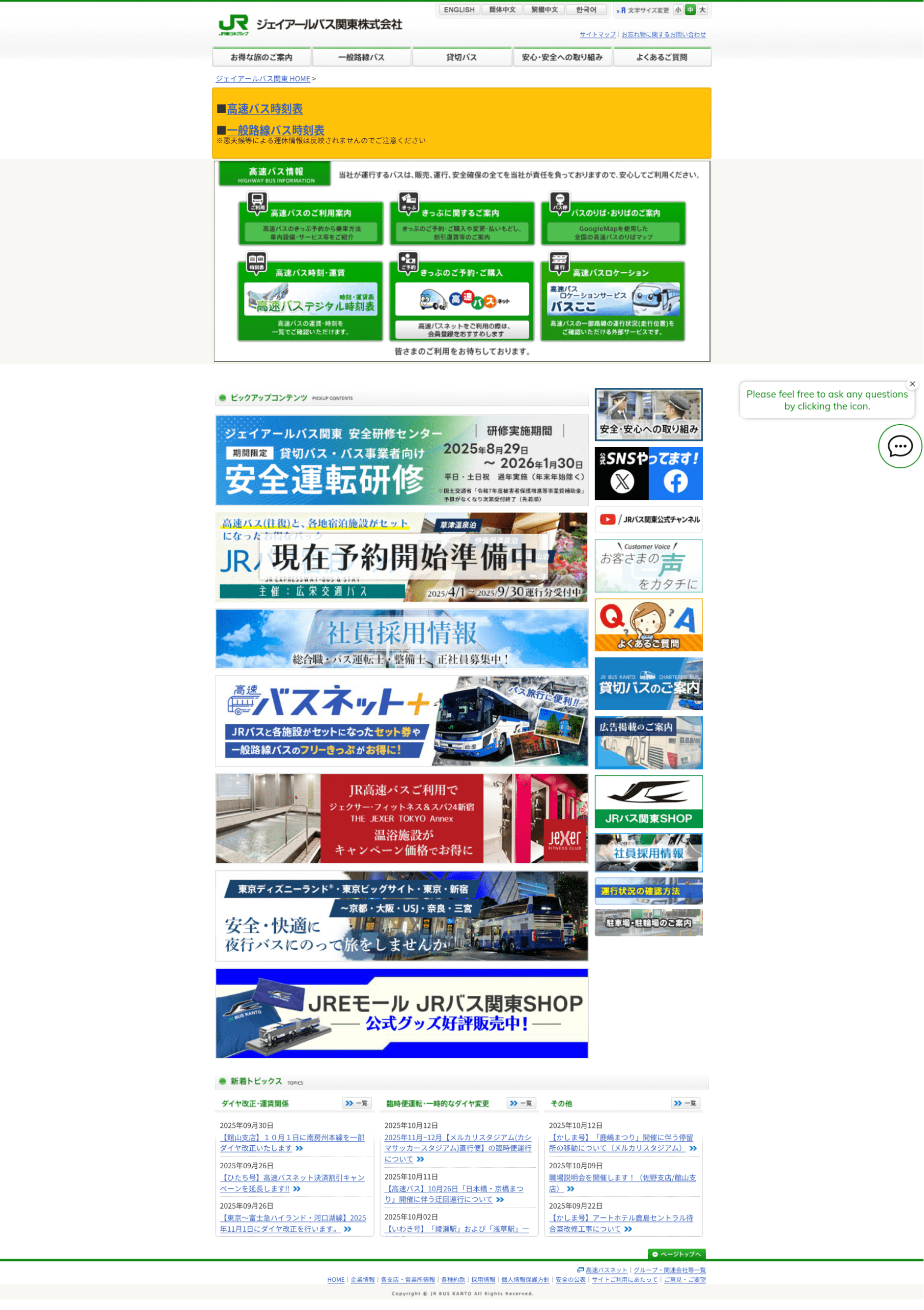 ジェイアールバス関東株式会社(ジェイアールバスかんとう、英語: JR BUS KANTO CO.,LTD.)は、東京都江東区に本社を置くJR東日本グループのバス事業者である。JRバスグループの一つ。関東地方と福島県、長野県、愛知県にわたる広域に拠点を持ち、東京と各地を結ぶ高速バスを中心に一般路線バスや貸切バスも営業する。近年では市町村が運営するコミュニティバスの運行も数多く受託している。 2025-10-14