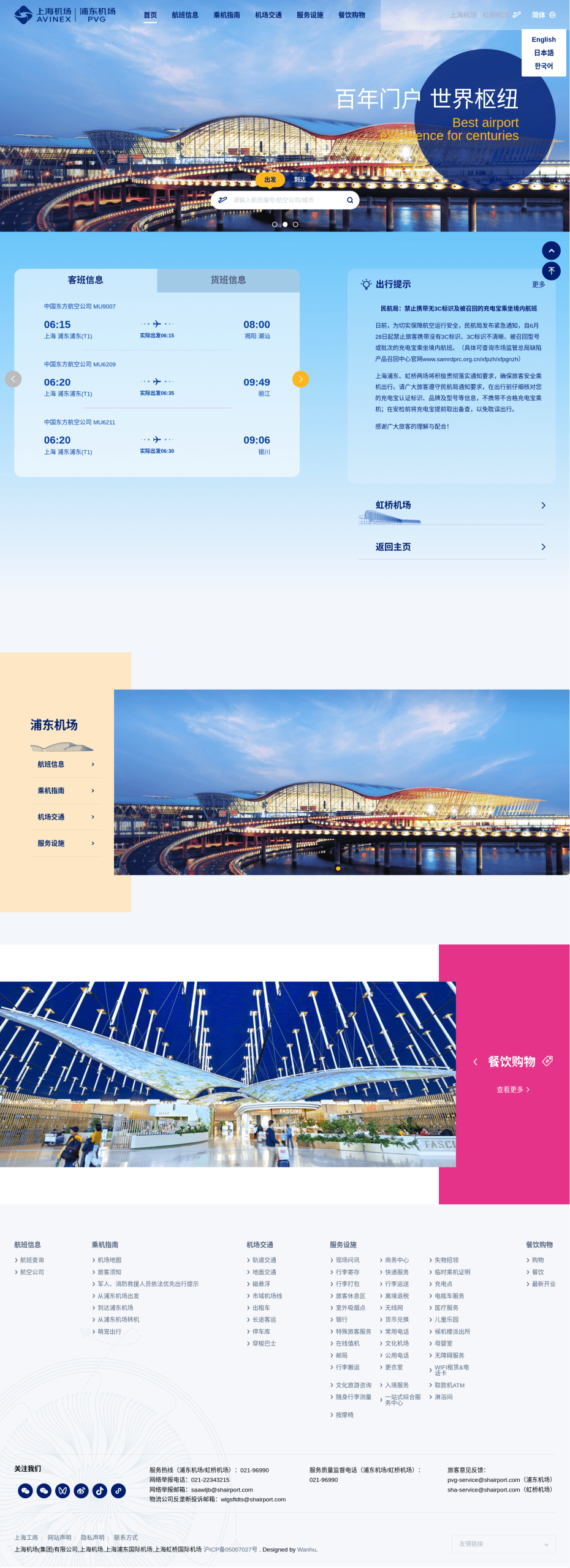 上海浦东国际机场(IATA代码:PVG;ICAO代码:ZSPD)位于中国上海市浦东新区祝桥镇的滨海地带,是上海市的第二座国际机场,与上海虹桥国际机场并列为上海对外的两大国际机场。规划占地45.66平方千米,现有占地面积约37.8平方千米,距市中心约30千米,由上海机场集团进行经营管理。作为上海最主要的对外口岸,浦东机场承担了往来于上海乃至周边城市的绝大部分国际航班和大部分港澳台航班的起降,也有部分内地境内航班在此运营。而上海市另一机场上海虹桥国际机场则以中国内地境内航线为主。 2025-09-27