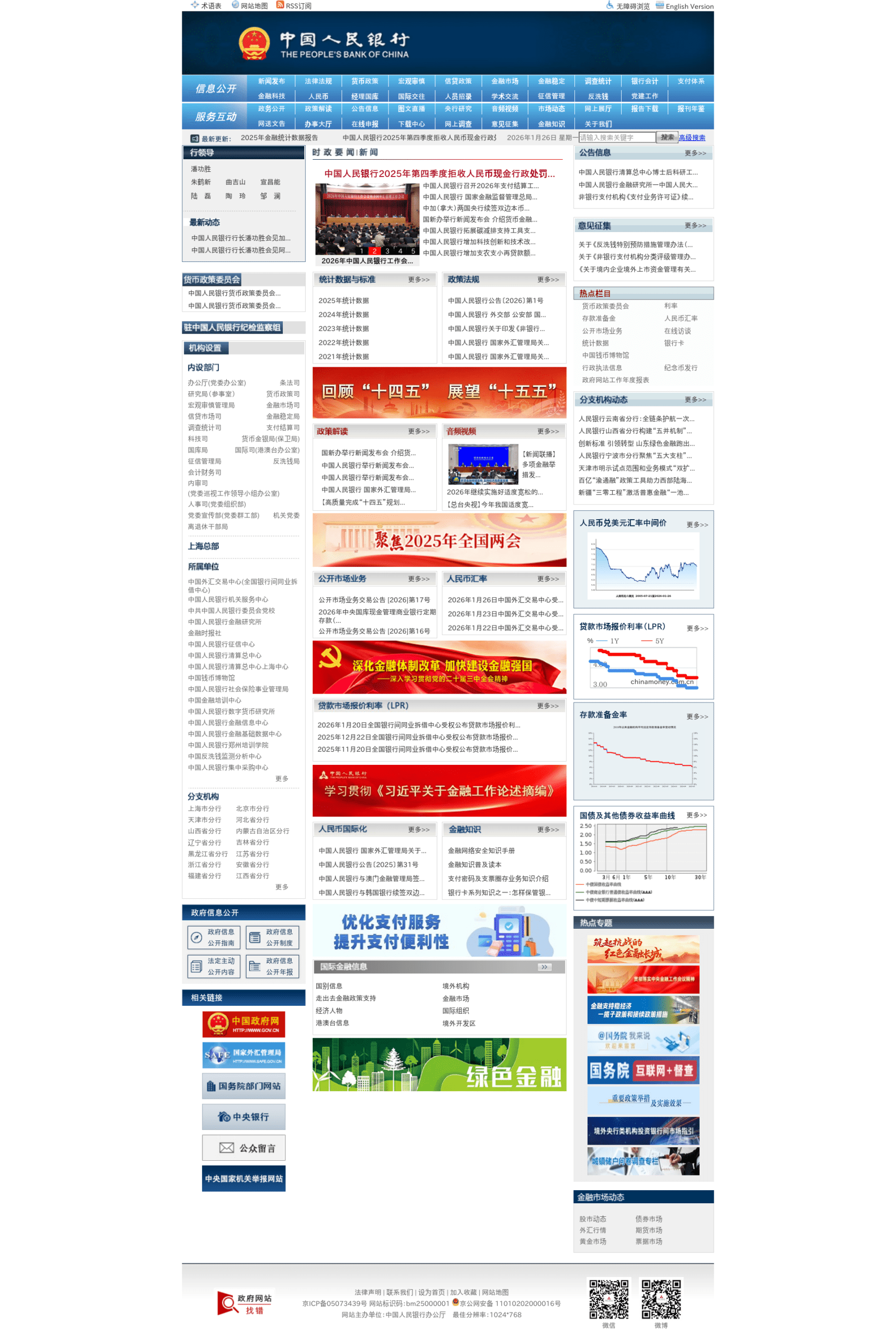 中国人民银行(曾简称为人民银行),在中国大陆亦通称为人行或央行,是中华人民共和国的中央银行,也是国务院组成部门,总行位于北京市。该行主要职责是拟订金融业改革和发展战略规划、制定和执行货币政策、汇率政策,承担最后贷款人的责任等。在2018年之前,中国人民银行曾是世界上资产规模最大的中央银行。 2026-01-26