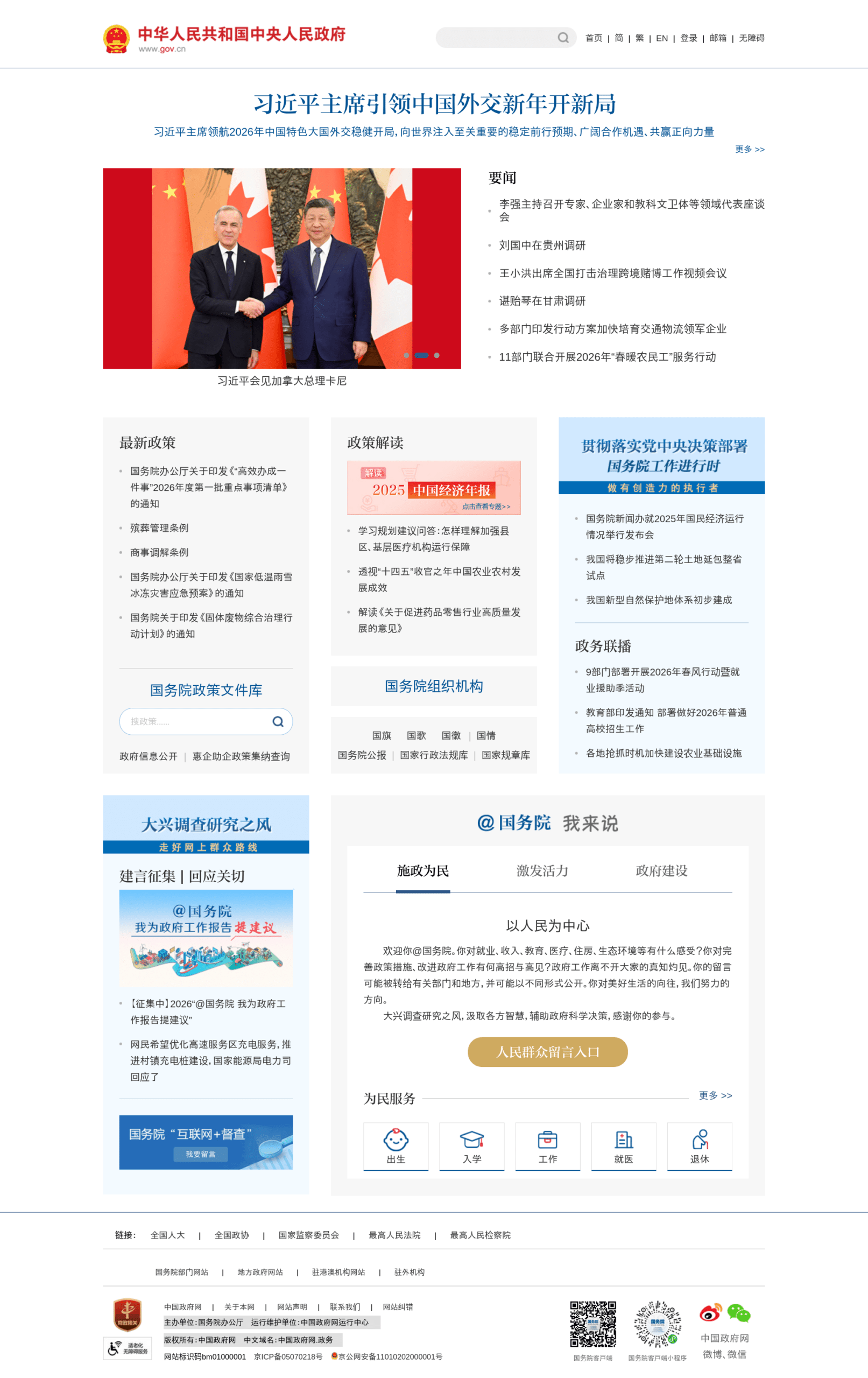 中华人民共和国中央人民政府门户网站,简称中国政府网,是中华人民共和国国务院的官方网站,由国务院办公厅主办。中国政府网于2005年10月1日试开通、2006年1月1日正式开通,现有中文版和英文版,中文版的网页中,可以选择以简体中文或繁体中文显示文字。