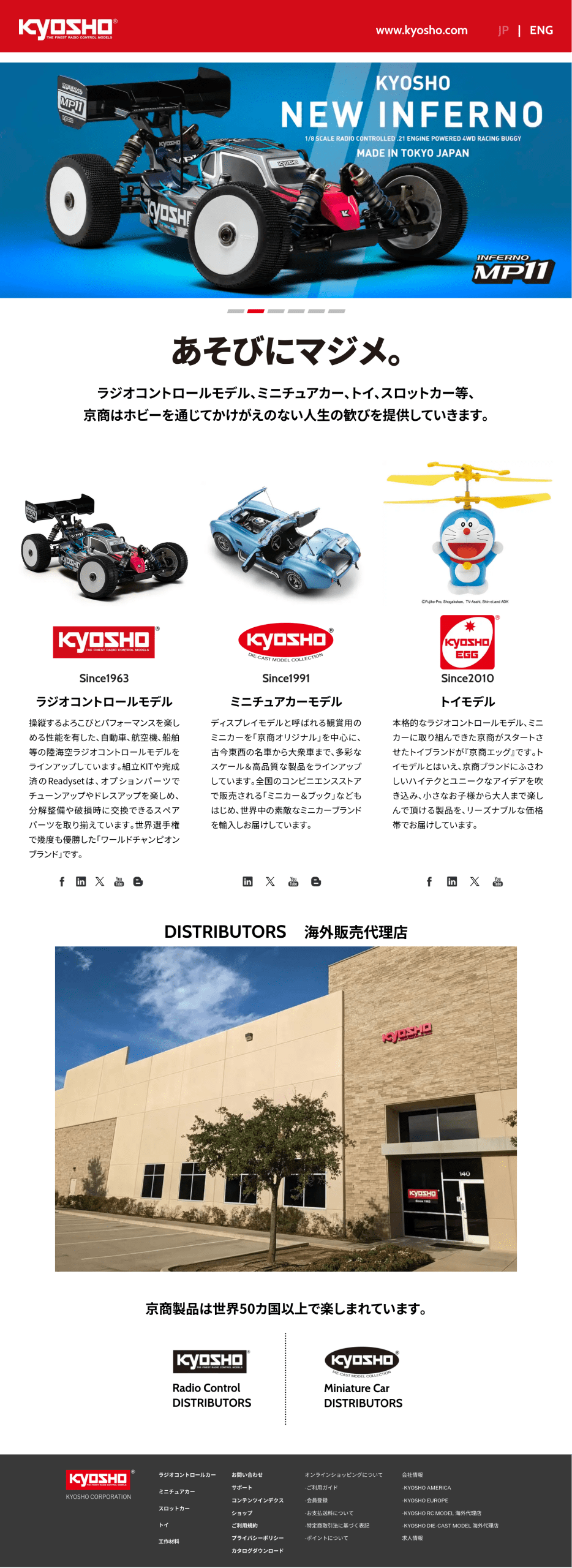 KYOSHOのブランド名で世界規模で展開する。老舗ラジオコントロールモデルメーカーで、自動車・飛行機・ヘリコプター・ボートなど幅広い製品を製造・販売する。精密なディテールを持つ高級ダイキャスト製・レジン製ミニカーも開発・販売する。