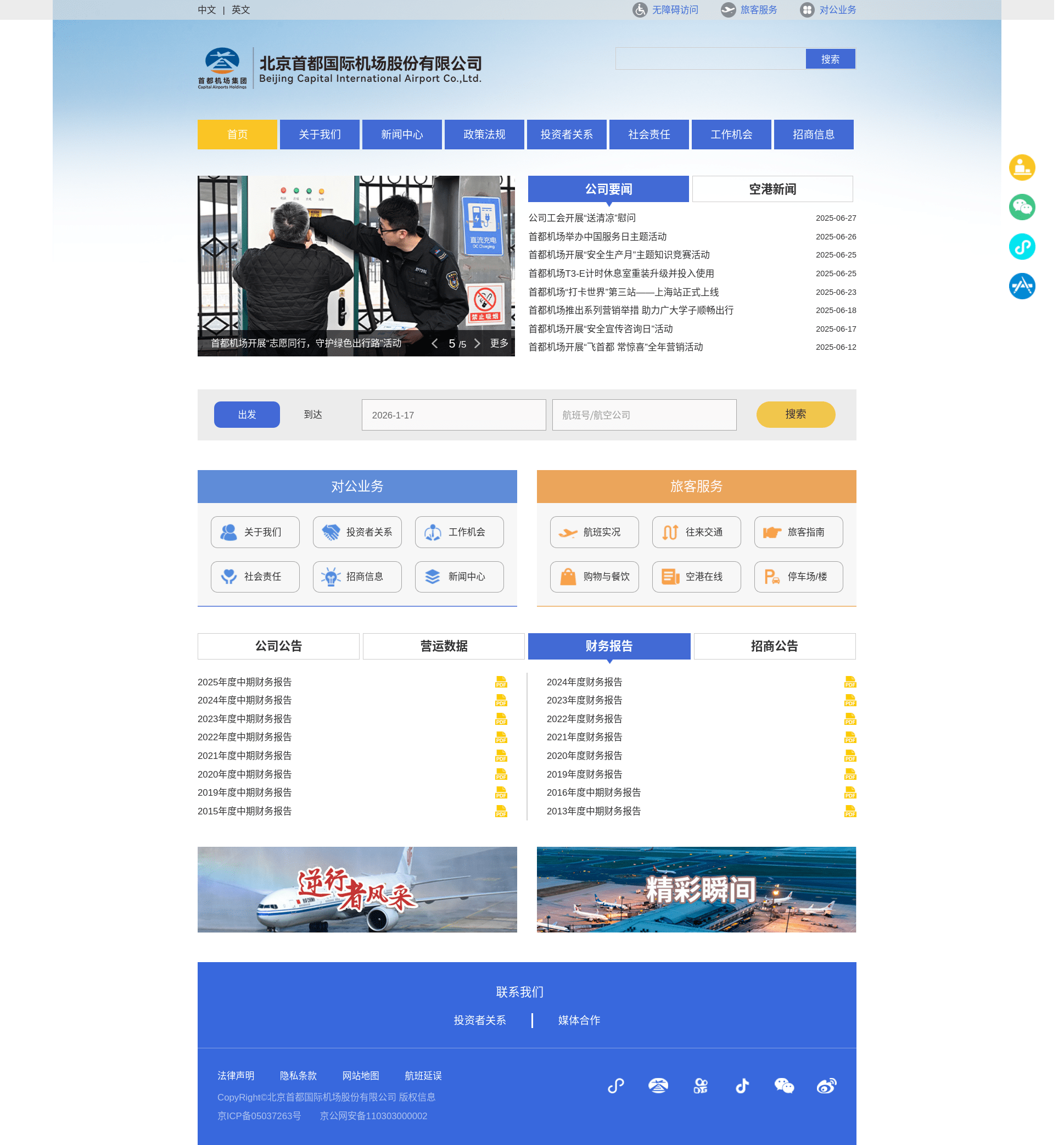 北京首都国际机场(IATA代码:PEK;ICAO代码:ZBAA),简称首都机场,为中华人民共和国(中國大陸)首都北京的其中一個聯外国际機场,位於北京市朝阳区及顺义区,是中国国际航空的基地机场。 2026-01-17