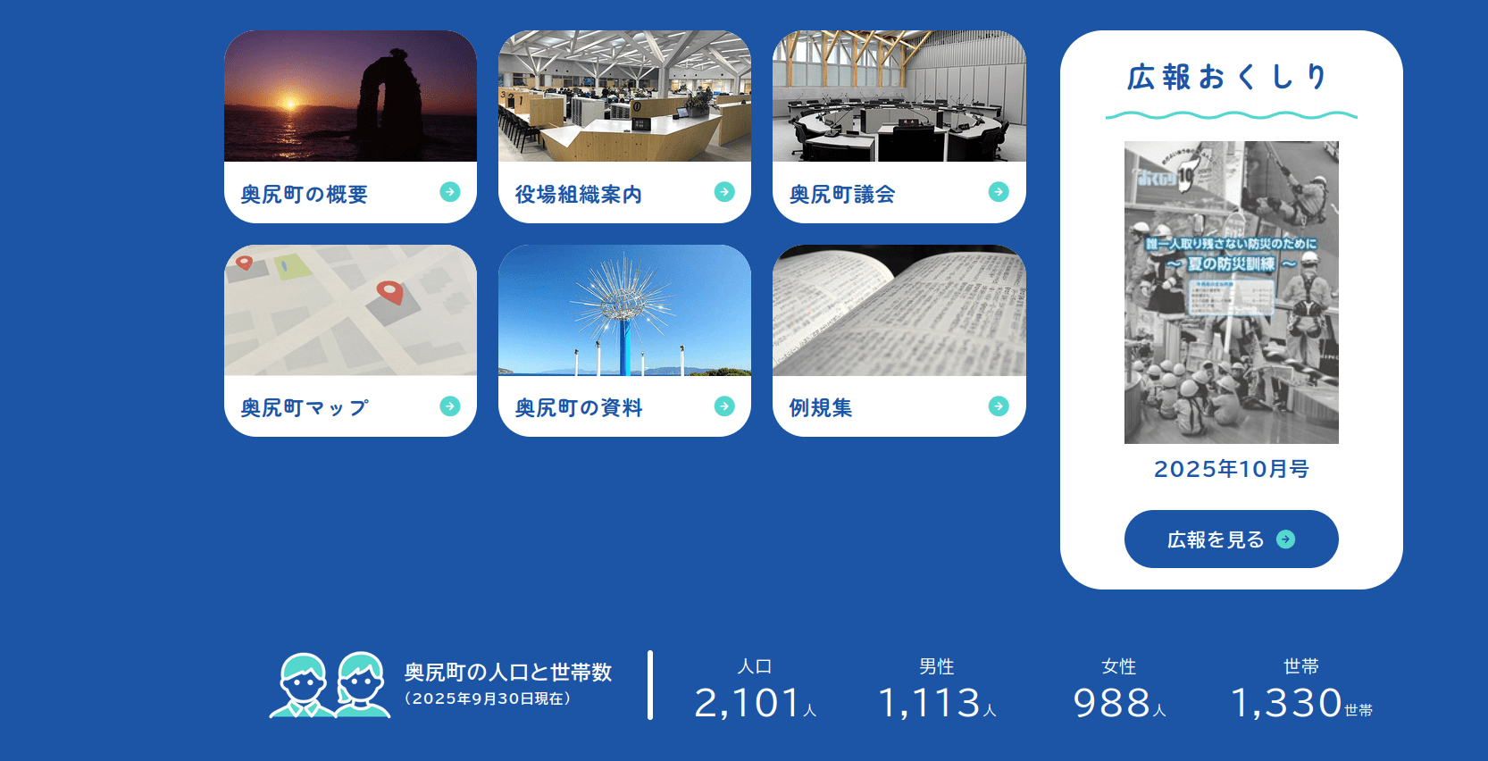 奥尻町(おくしりちょう)は、北海道檜山振興局管内の奥尻郡にある町。1966年(昭和41年)町制施行。町域は奥尻島の全域である。