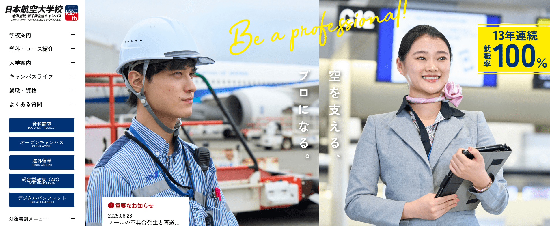 航空機設計エンジニア・航空整備士・グランドハンドリング・CA・グランドスタッフを養成!