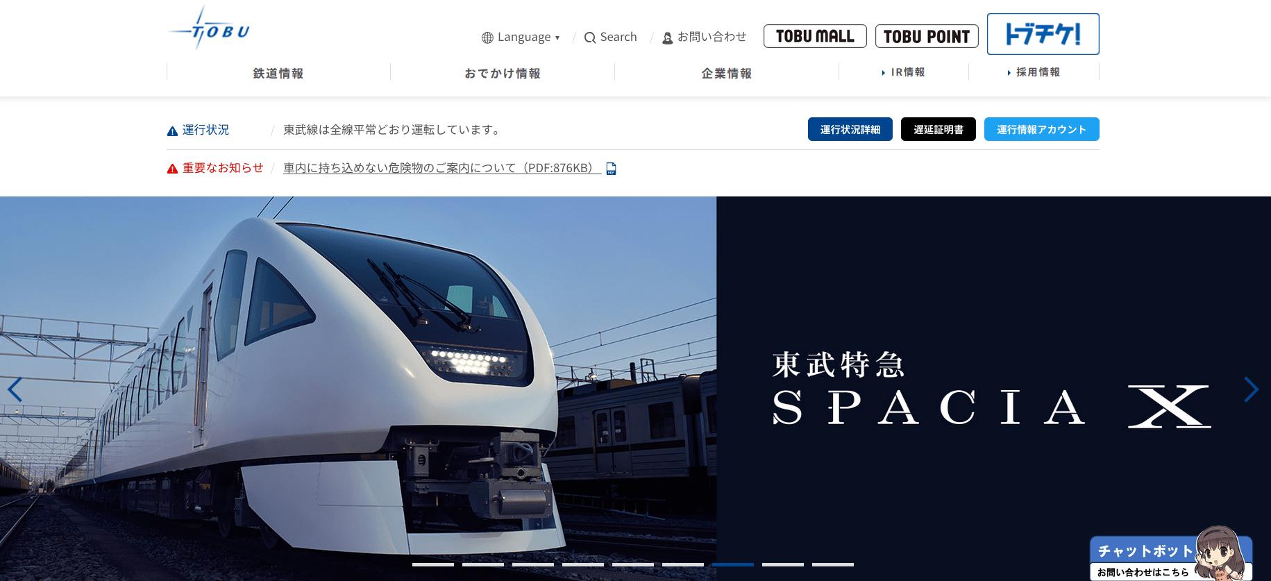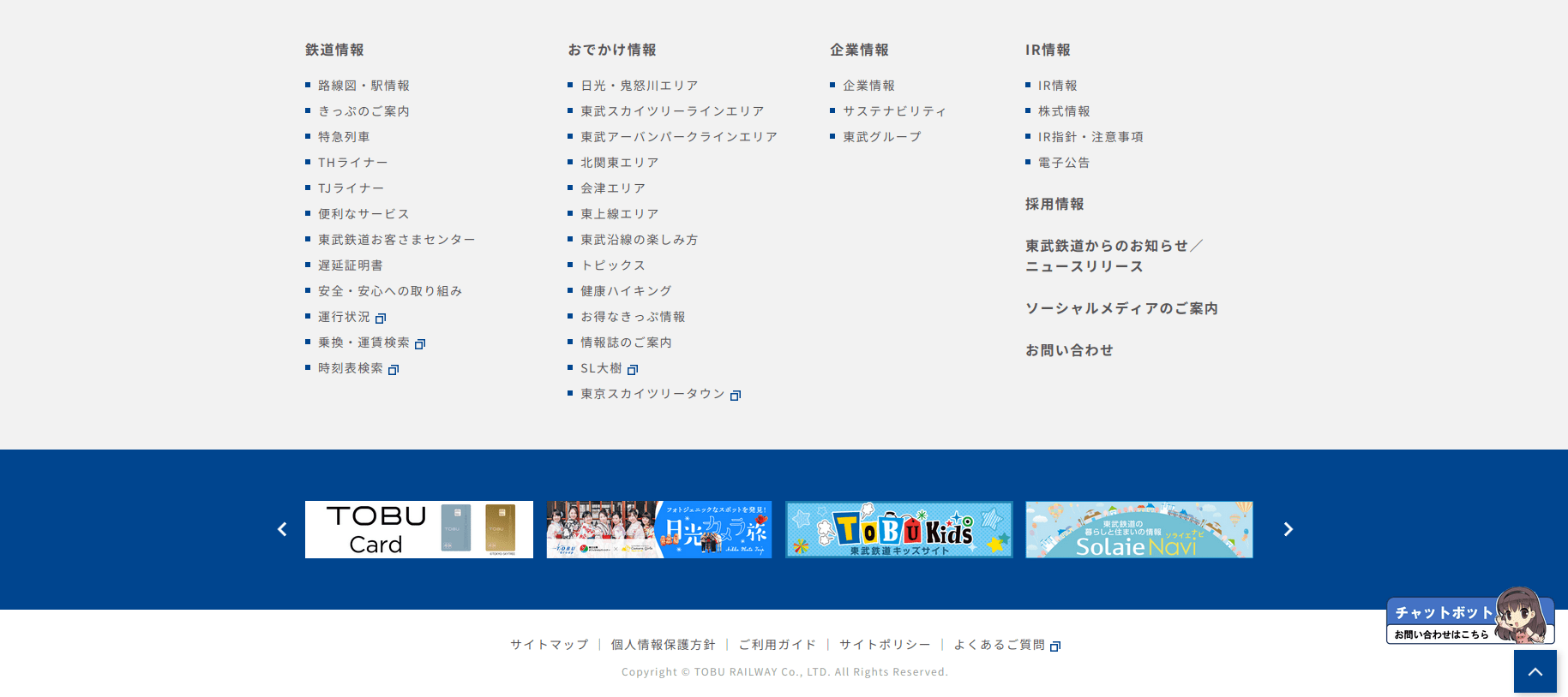 東武鉄道株式会社(とうぶてつどう、英: TOBU RAILWAY CO., LTD.)は、東京都墨田区押上に本社を置く日本の鉄道事業者。大手私鉄の一つであり、関東地方1都4県で12の鉄道路線を運営している。略称は東武(とうぶ)。鉄道のほか、バスなどの交通・流通・物流業・住宅・レジャーなど約80社からなる東武グループの中核企業である。日経平均株価の構成銘柄の一つ。 2025-10-14