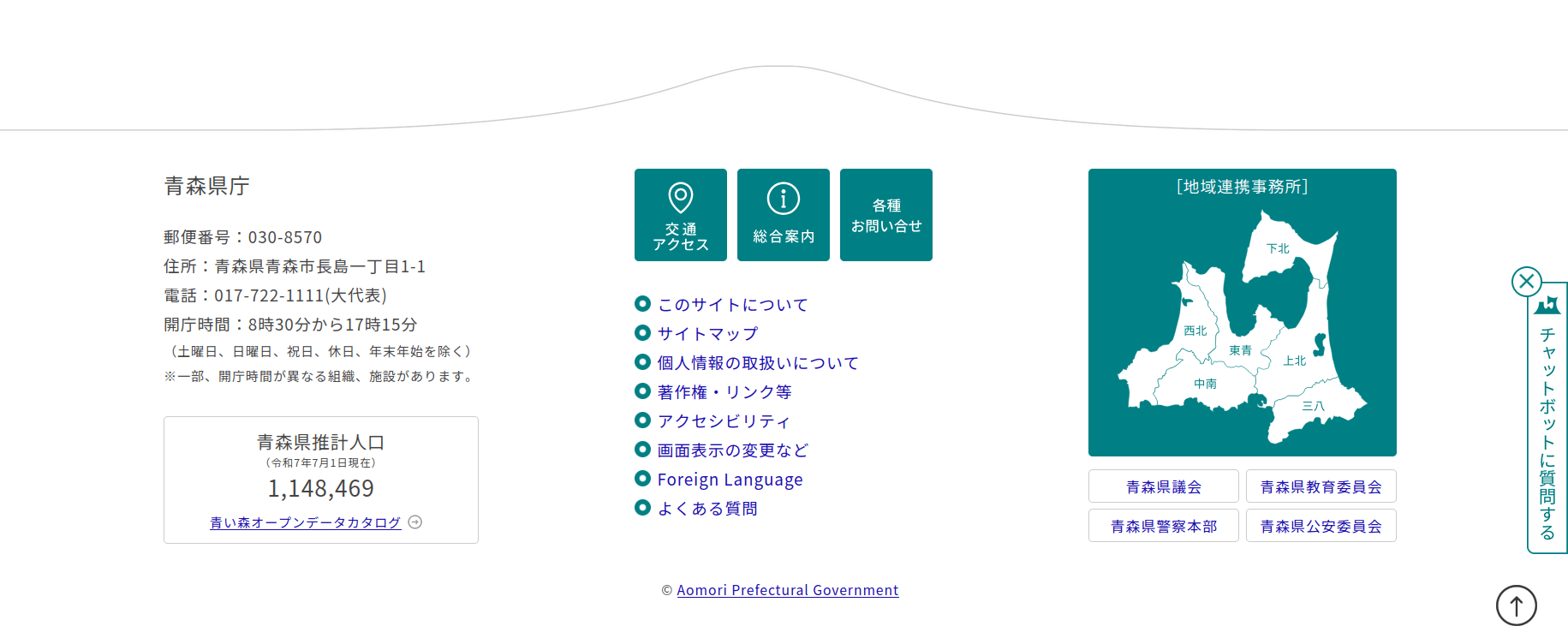 青森県(あおもりけん)は、日本の東北地方に位置する県。県庁所在地は青森市。県の人口は全国31位。県の面積は全国8位。令制国の陸奥国(むつのくに、りくおうのくに)北部にあたる。