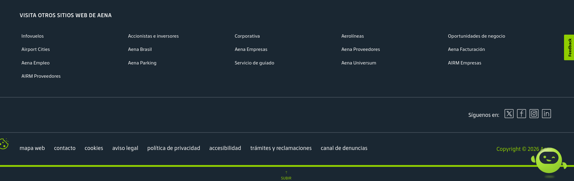 Aena, S. M. E., S. A. (IBEX 35: AENA; acrónimo de Aeropuertos Españoles y Navegación Aérea) es una empresa pública española (sociedad mercantil estatal o SME) constituida en sociedad anónima que gestiona los aeropuertos de interés general en España. La sociedad, que es propiedad al 51% de la entidad pública empresarial Enaire, opera 46 aeropuertos y 2 helipuertos en España y participa a través de su filial Aena Internacional, en la gestión de 32 aeropuertos en Europa y América, lo que convierte a la compañía en el primer operador aeroportuario del mundo por número de pasajeros.