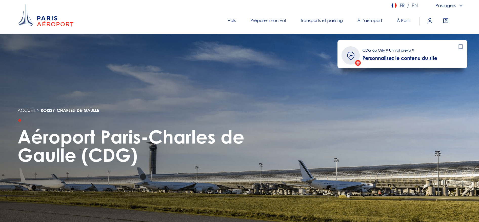 L’aéroport de Paris-Charles-de-Gaulle (code IATA : CDG • code OACI : LFPG), communément appelé aéroport de Roissy, est un aéroport international situé à Roissy-en-France, 23 km au nord-est de Paris.
