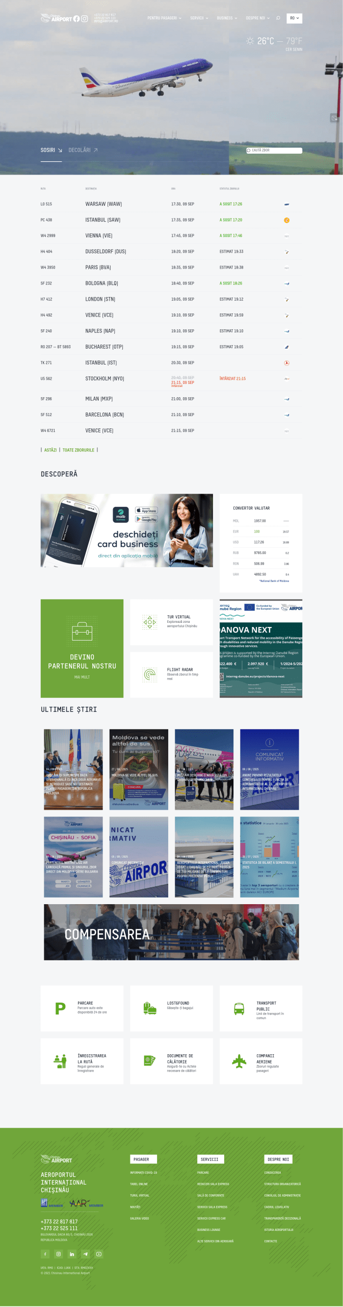 Chișinău Eugen Doga International Airport (Romanian: Aeroportul Internațional „Eugen Doga” Chișinău; IATA: RMO, ICAO: LUKK) is Moldova’s main international airport, located 13 km (8.1 mi) southeast of the centre of Chișinău, the capital city. It served as headquarters for Air Moldova, the country’s national airline.