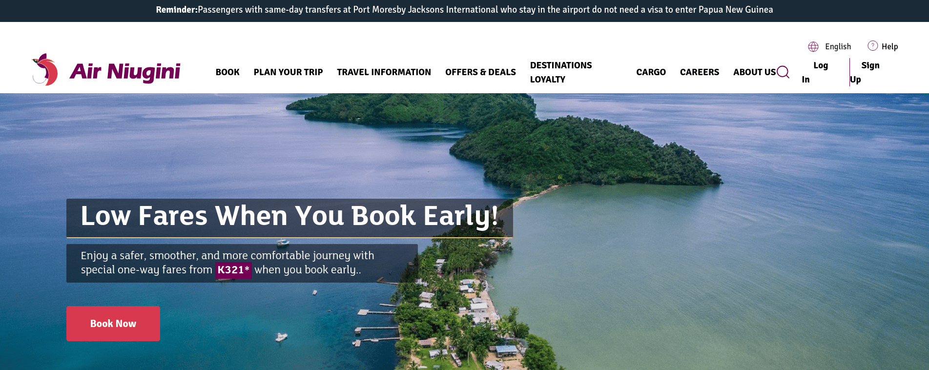 Air Niugini Limited is the flag carrier of Papua New Guinea, based in Air Niugini House on the site of Port Moresby International Airport, Port Moresby. It operates a domestic network from Port Moresby to 12 major airports while its subsidiary company, Link PNG, operates routes to minor airports. It also operates international services in Asia, Oceania, and Australia on a weekly basis. Its main base is Port Moresby International Airport, which is located in 7 Mile, Port Moresby, Papua New Guinea. Niugini is the Tok Pisin word for New Guinea.