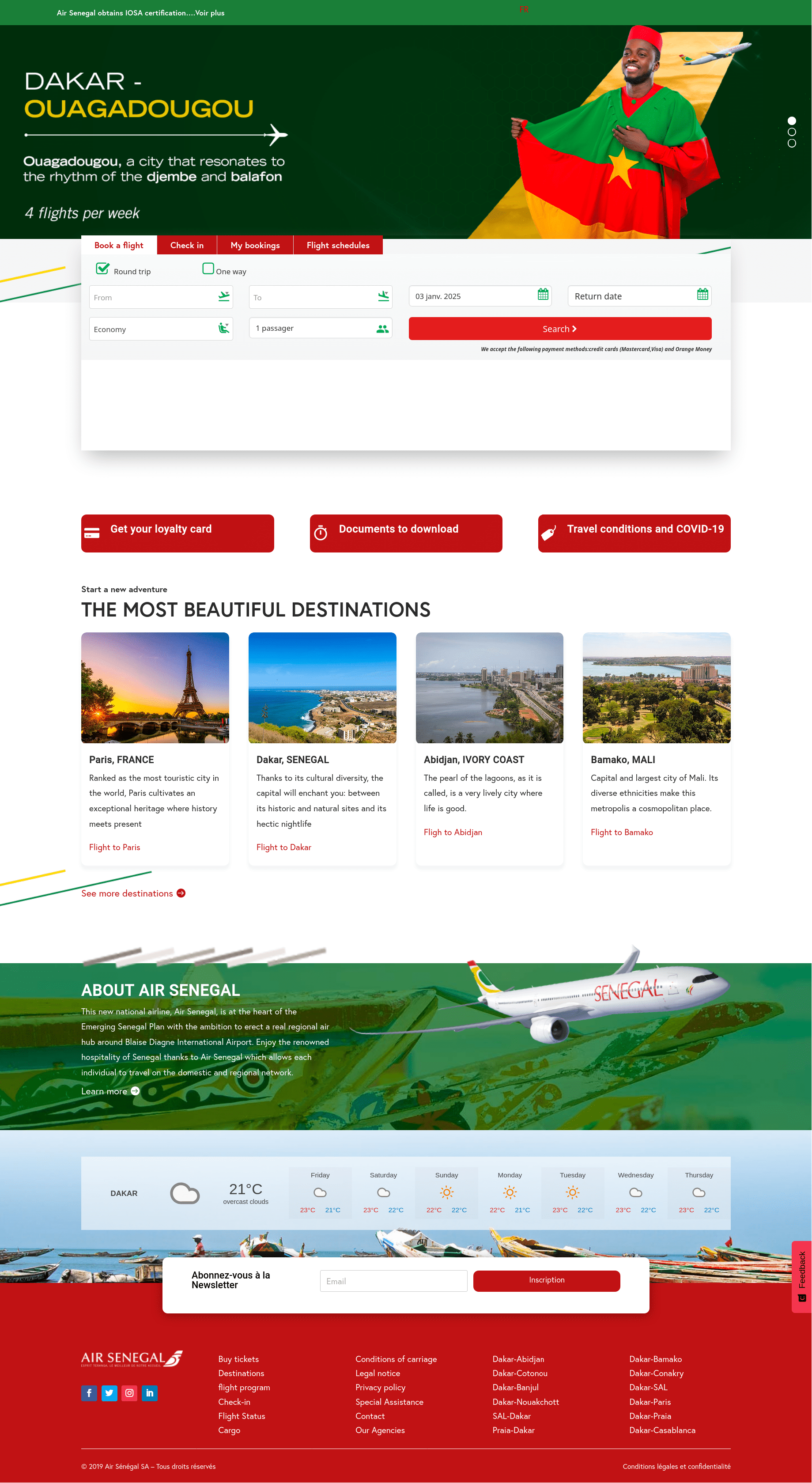 Air Senegal is the flag carrier of the Republic of Senegal. Created in 2016, it is state owned through investment arm Caisse des Dépots et Consignation du Sénégal. It is based at Blaise Diagne International Airport in Dakar, Senegal. 2025-01-03