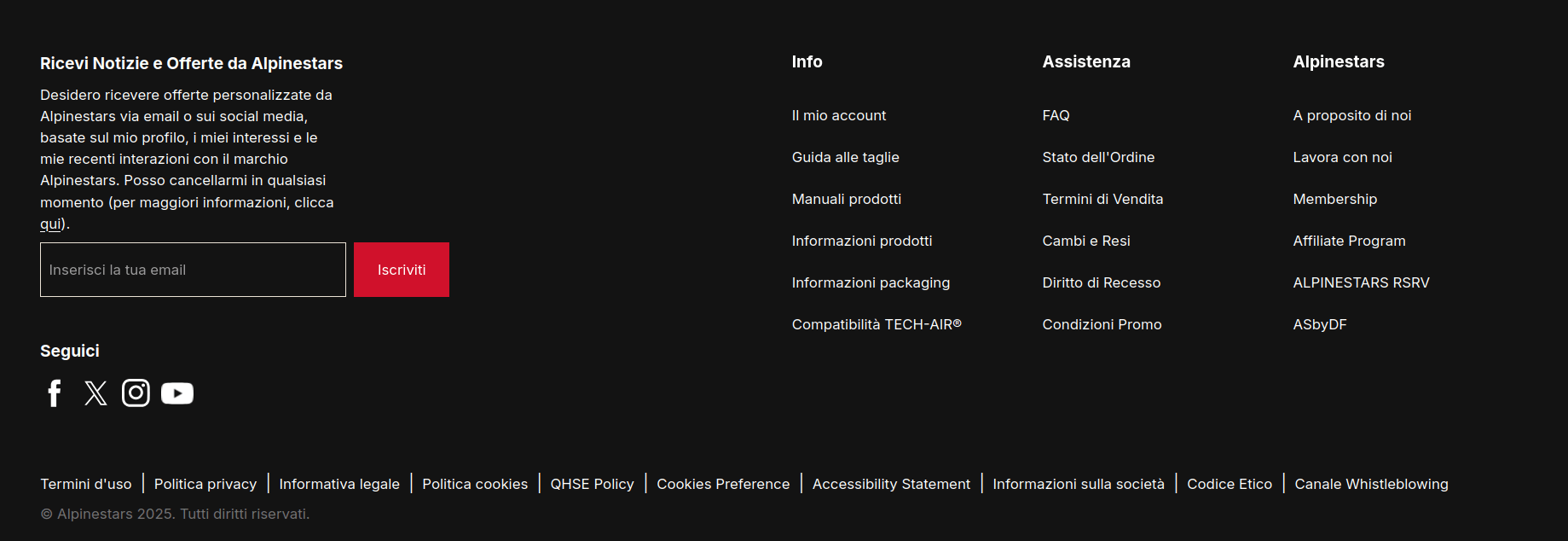 Alpinestars is an Italian motorsports and action sports safety equipment manufacturer based in Asolo, Italy. Its lines include specialized products for MotoGP, motocross, motorcycling, Formula One, World Rally Championship, WEC, V8 Supercars, NASCAR, mountain biking, and surfing, and motorsports-themed, non-sports clothing. The company has fashion design centers in Italy and California offering products for men, women and children.