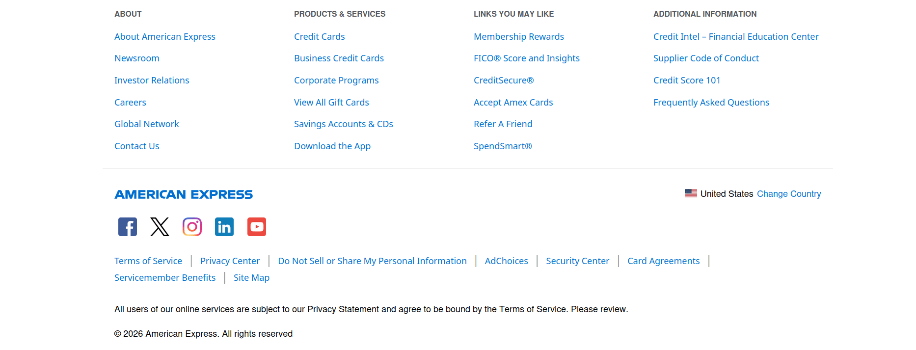 American Express Company or Amex is an American bank holding company and multinational financial services corporation that specializes in payment cards. It is headquartered at 200 Vesey Street, also known as American Express Tower, in the Battery Park City neighborhood of Lower Manhattan.