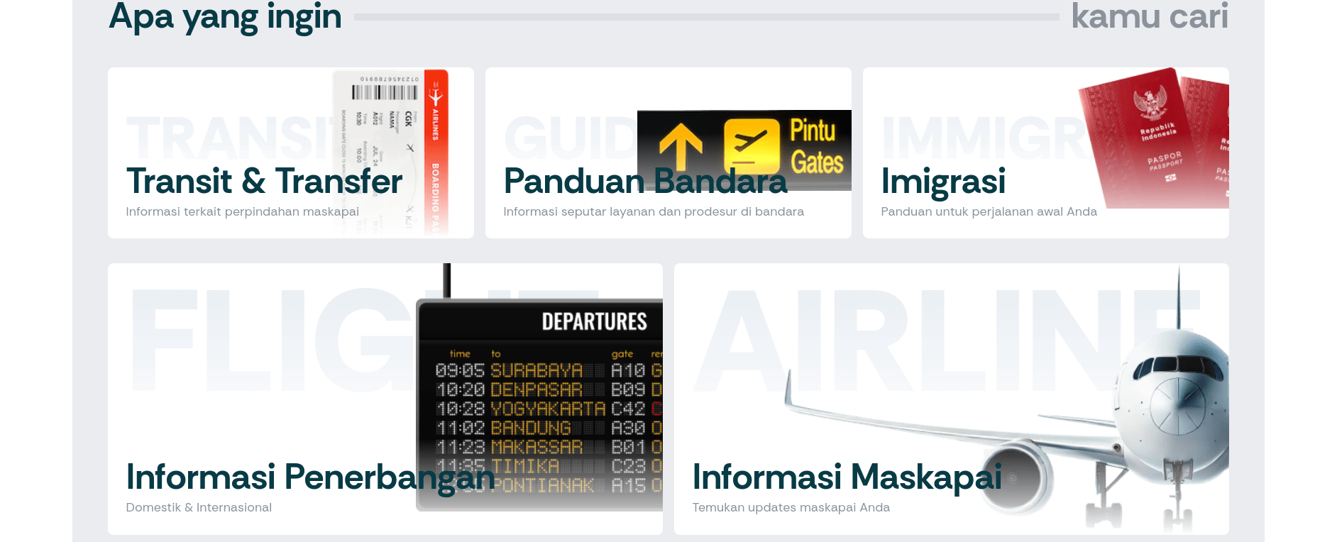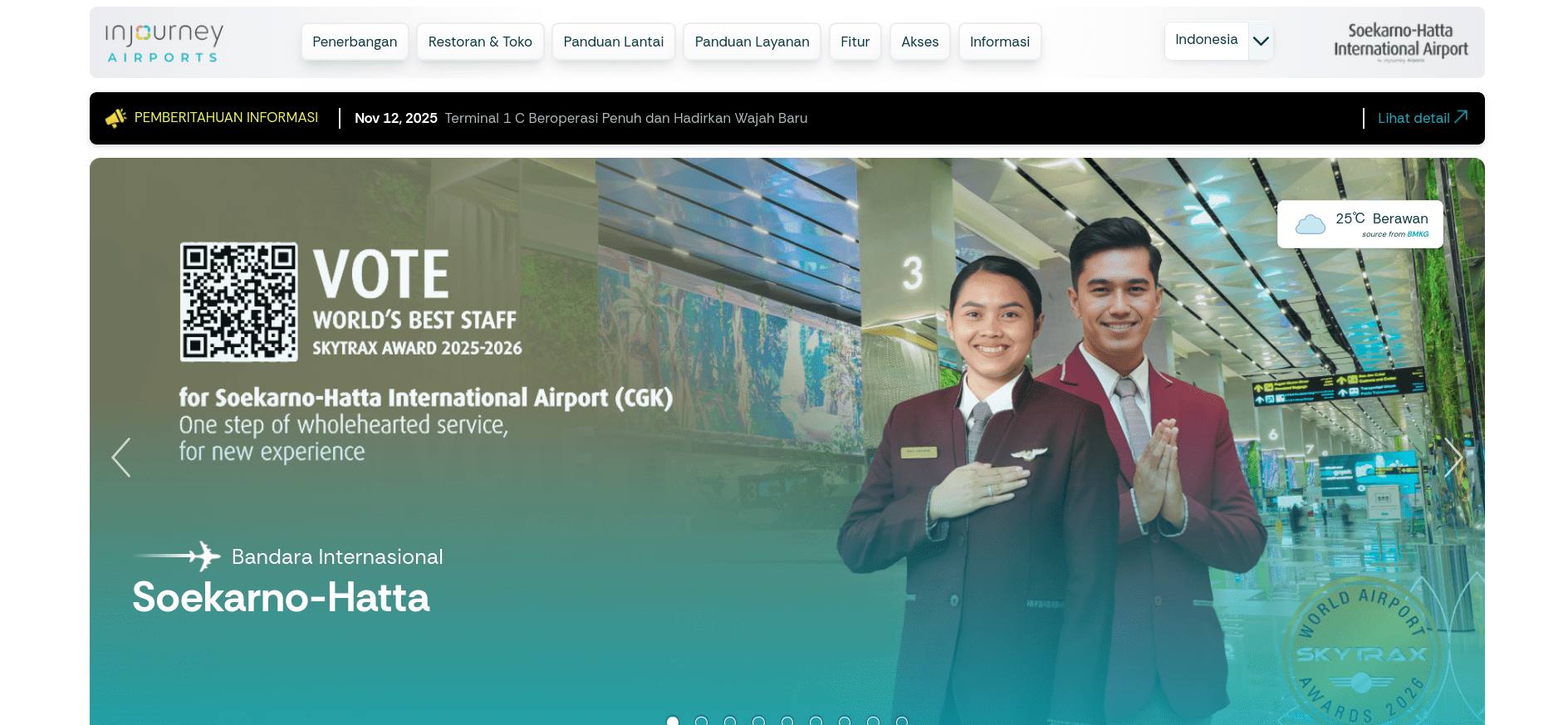 Bandar Udara Internasional Soekarno–Hatta (Soekarno–Hatta International Airport; IATA: CGK, ICAO: WIII), disingkat SHIA atau Soetta, sebelumnya secara hukum disebut Bandar Udara Jakarta Cengkareng (Jakarta Cengkareng Airport, dengan IATA penunjuk “CGK”), adalah bandar udara utama yang melayani penerbangan untuk wilayah Jabodetabek dan pintu gerbang utama penerbangan internasional di Indonesia. Bandar udara ini diberi nama sesuai dengan nama dwitunggal tokoh proklamator kemerdekaan Indonesia, Soekarno dan Mohammad Hatta, yang sekaligus merupakan Presiden dan Wakil Presiden Indonesia pertama. Bandara ini terletak di Kecamatan Benda, Kota Tangerang, Banten, yaitu sekitar 17 km arah barat dari DKI Jakarta. Bersama dengan Bandar Udara Internasional Halim Perdanakusuma, mereka melayani lebih dari 80 juta penumpang pada tahun 2019.