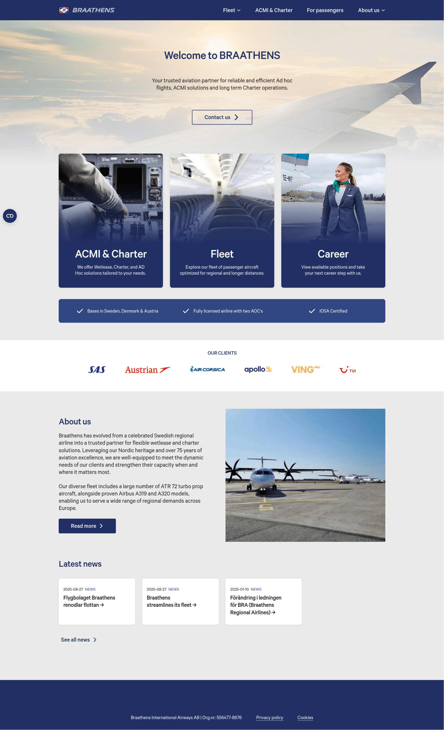 Braathens Regional Aviation, was a Swedish airline based in Malmö. From 2016 it provided wet-leasing services in partnership with its sister airline Braathens Regional Airways for Braathens Regional Airlines. 2025-09-27