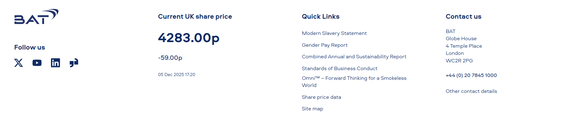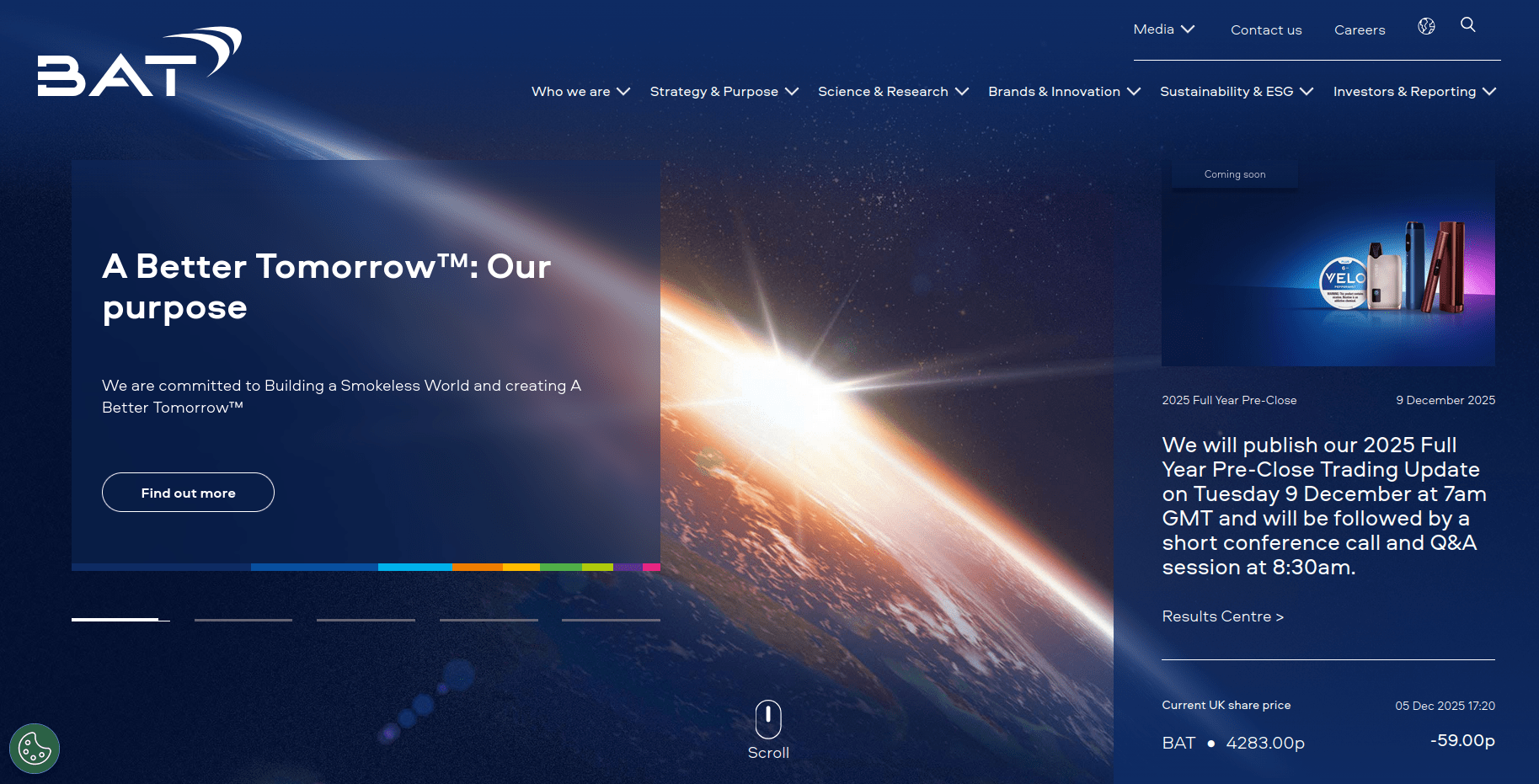 BAT has operations in around 180 countries and its cigarette brands include Dunhill, Kent, Lucky Strike, Pall Mall and Rothmans. Its brands also include Vuse e-cigarettes, Glo heated tobacco, and Velo nicotine pouches.