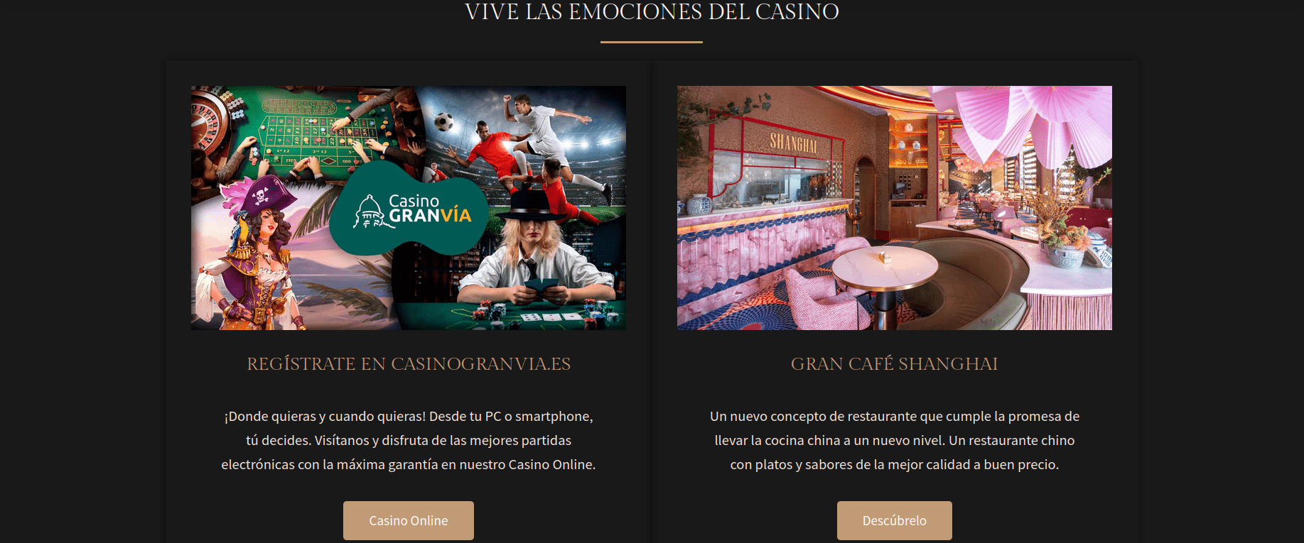 “Casino Gran Vía es un espacio único en el corazón de la Gran Vía de Madrid perfecto para disfrutar de la mejor gastronomía y coctelería, de su espectacular riqueza arquitectónica y del ocio más exclusivo.