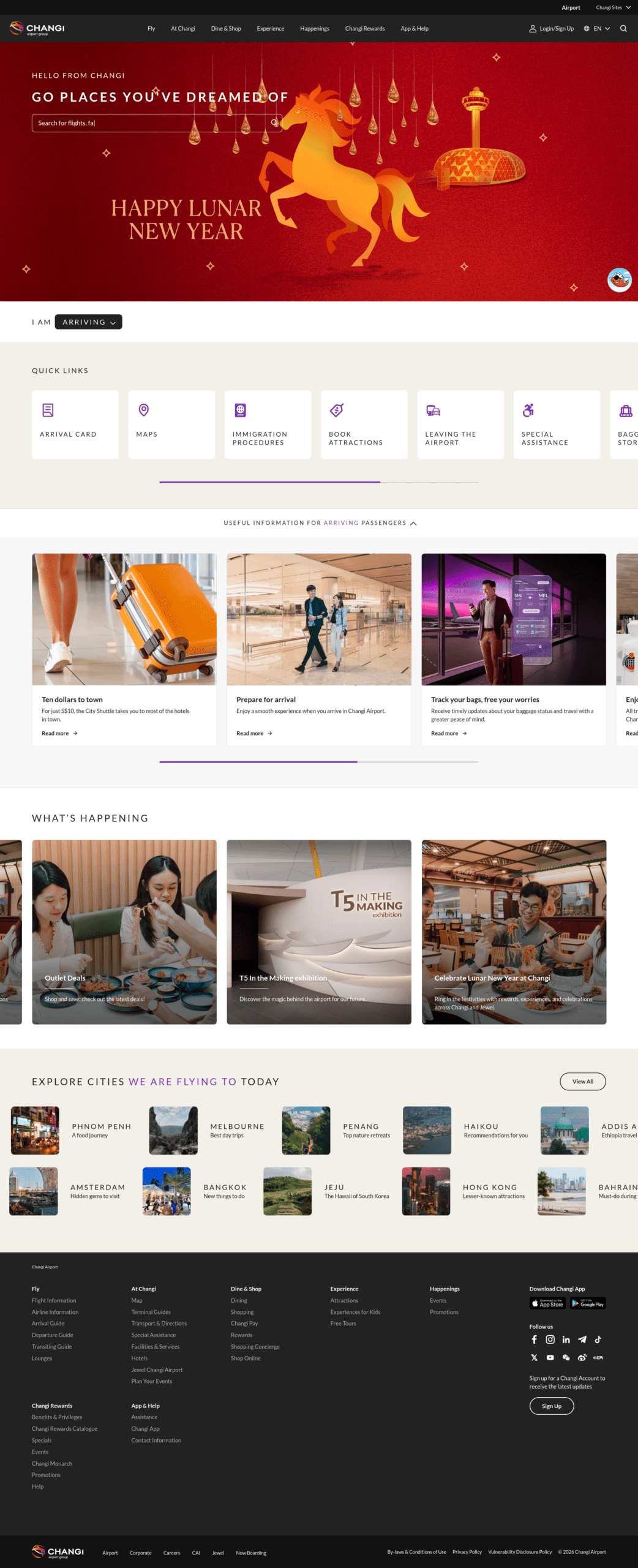 Changi Airport (IATA: SIN, ICAO: WSSS) is the principal international airport serving the Republic of Singapore, and functions as one of the most significant aviation gateways in the Asia-Pacific region. Situated within the Changi planning area in the eastern part of the country, the airport is approximately 24 kilometres (15 miles) from the Downtown Core and occupies a site spanning about 25-square-kilometre (9.7 sq mi). The airport is a base for more than 100 international carriers with scheduled services linking Singapore to destinations across Asia, Oceania, Africa, Europe, the Middle East and North America. As of 2025, Changi Airport handled 69.98 million passengers, ranking it as the 15th busiest globally.
