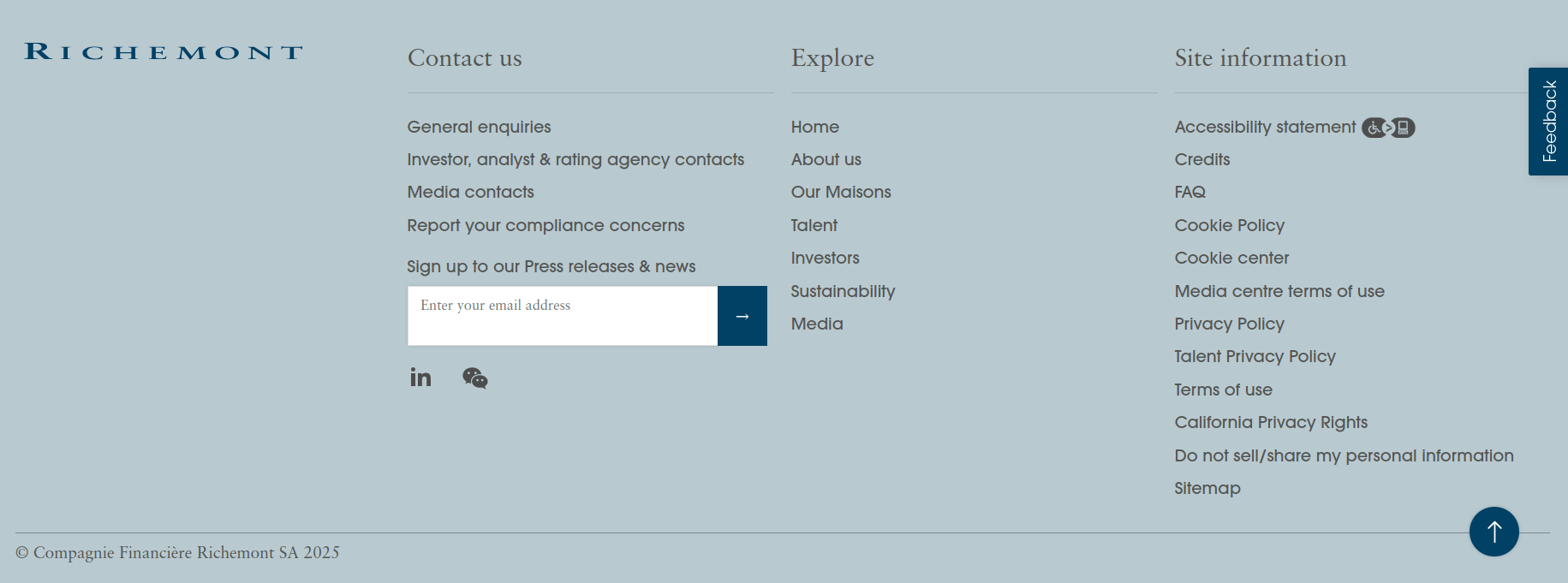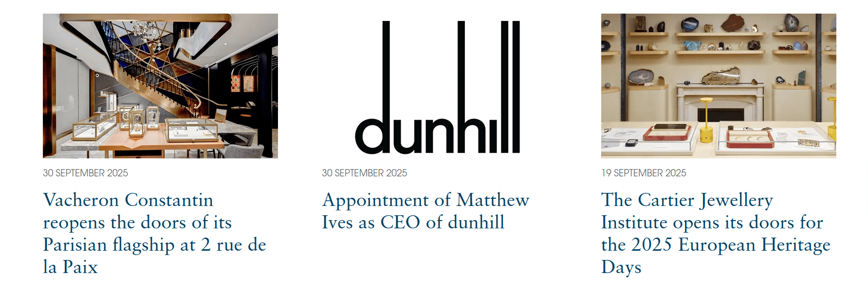 Compagnie Financière Richemont SA, commonly known as Richemont, is a Switzerland-based luxury goods holding company founded in 1988 by South African businessman Johann Rupert. Through its various subsidiaries, Richemont produces and sells jewellery, watches, leather goods, pens, firearms, clothing, and accessories. Richemont is publicly traded as CFR on the SIX Swiss Exchange and the JSE.