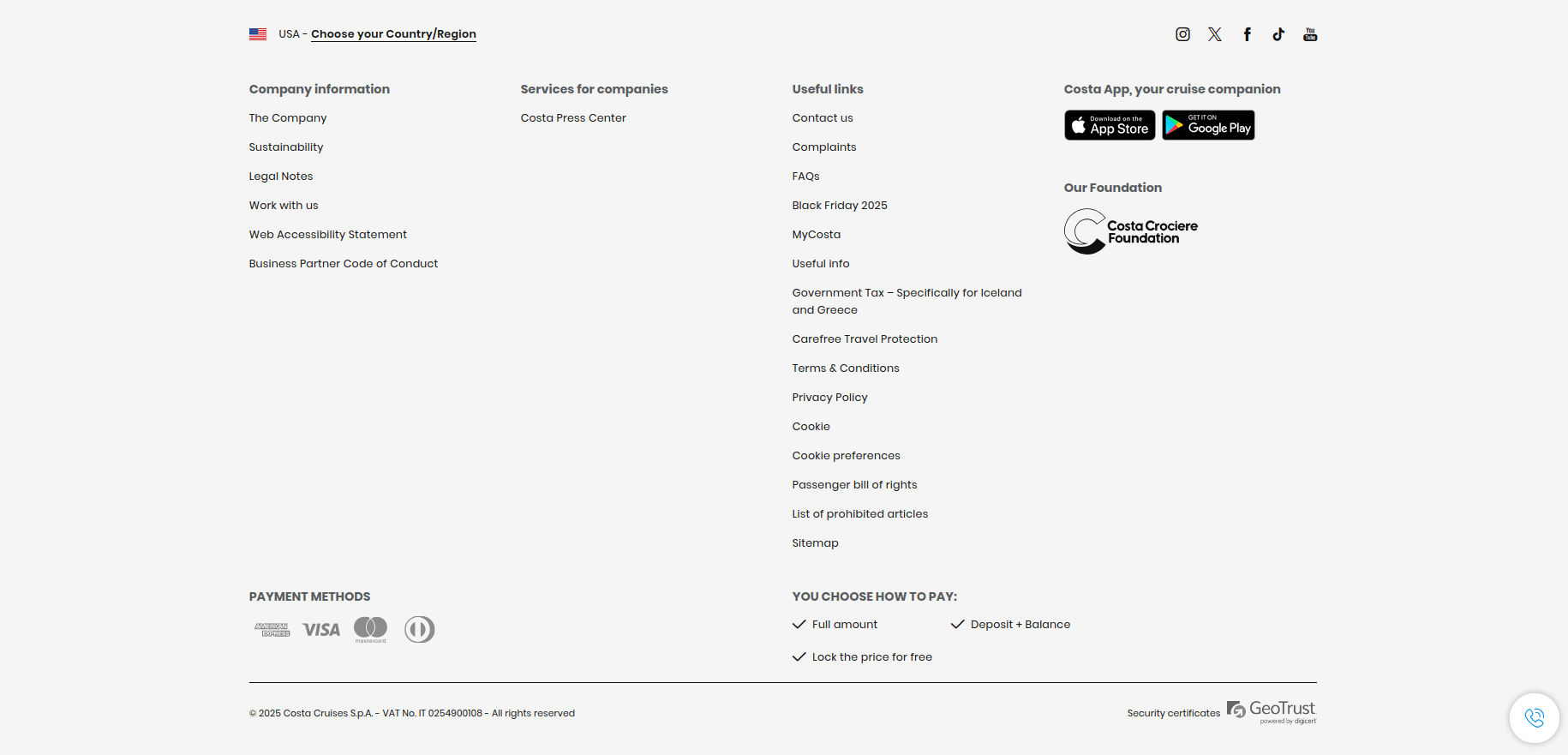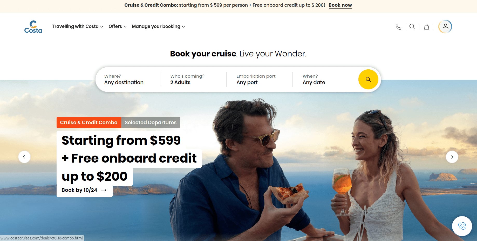 Costa Crociere S.p.A. operating as Costa Cruises, is an Italian cruise line founded in 1948 and organized as a wholly owned subsidiary of Carnival Corporation & plc since 2000. Based in Genoa, Italy, the cruise line primarily caters to the European cruise market, but the company’s 10 ships, which all sail under the Italian flag, provide itineraries sailing to countries globally.