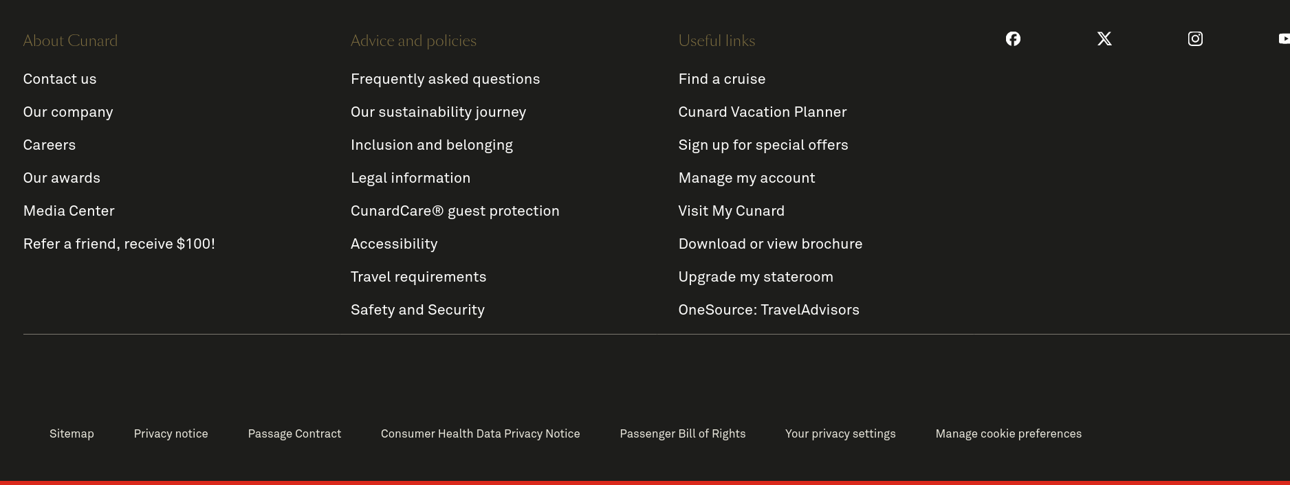 The Cunard Line is a British shipping company and an international cruise line based at Carnival House at Southampton, England, operated by Carnival UK and owned by Carnival Corporation & plc. Since 2011, Cunard and its four ships have been registered in Hamilton, Bermuda.