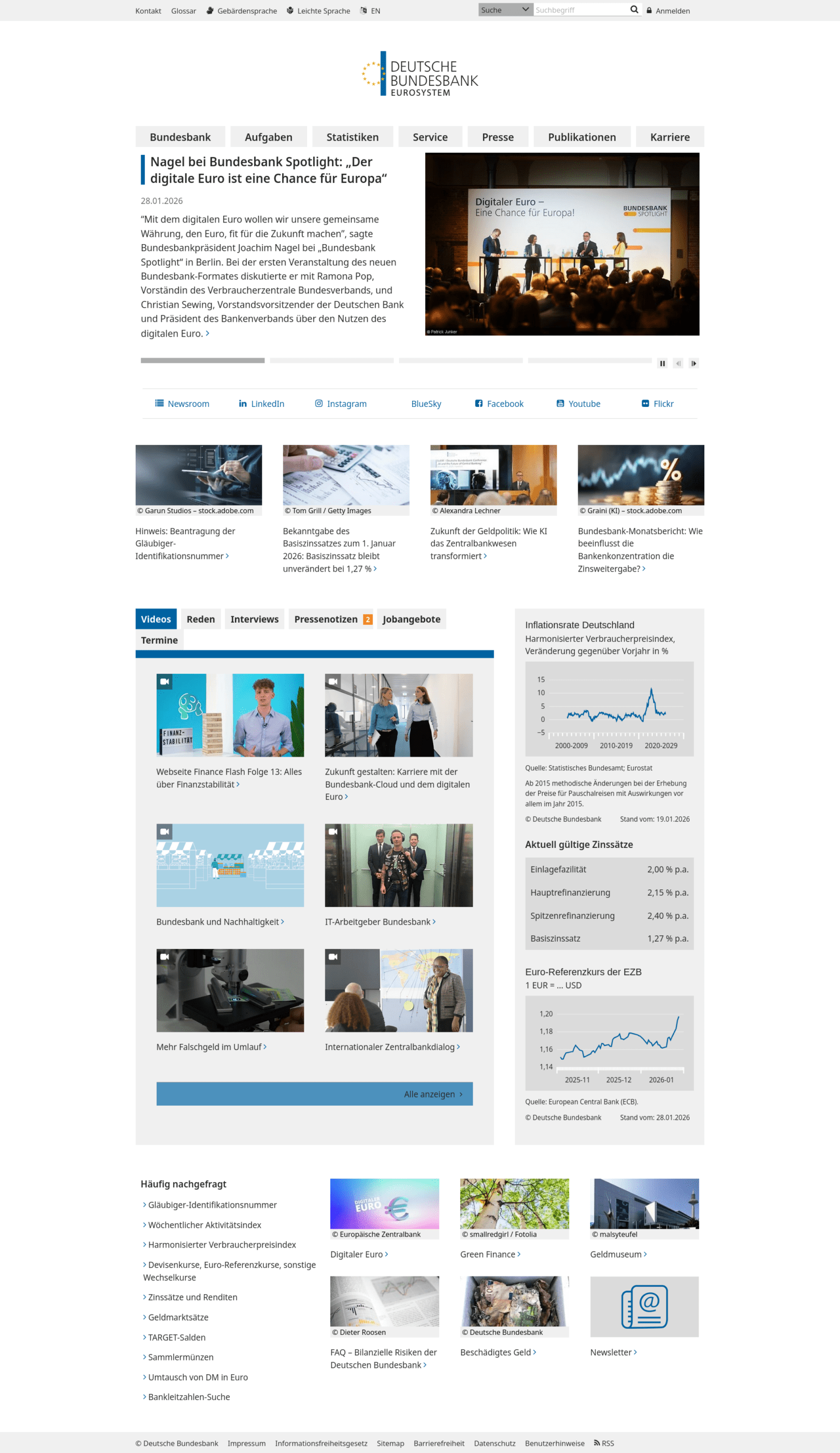 Die Deutsche Bundesbank (kurz BBk, auch DBB) ist die Zentralbank Deutschlands mit Hauptsitz in Frankfurt am Main und Teil des Europäischen Systems der Zentralbanken. Sie ist eine bundesunmittelbare juristische Person des öffentlichen Rechts und gehört zur mittelbaren öffentlichen Verwaltung. Die Zentrale der Bank am Standort Frankfurt am Main hat die Stellung einer Obersten Bundesbehörde (vgl. Bundesbankgesetz). Mit einer Bilanzsumme von über 2,5 Billionen Euro ist die Bundesbank die viertgrößte Zentralbank der Welt.