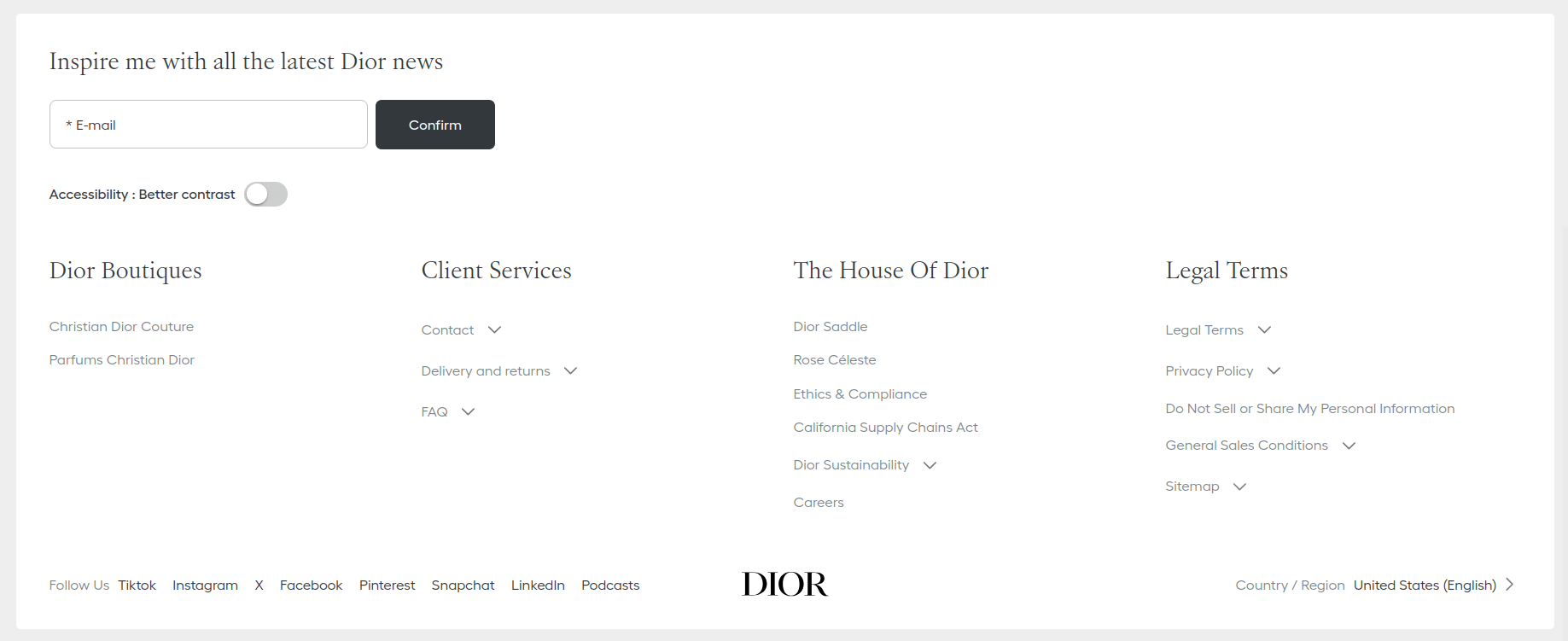 Christian Dior SE commonly known as Dior, is a French multinational luxury goods company that is controlled and chaired by French businessman Bernard Arnault, who also heads LVMH. As of December 2023, Dior controlled around 42% of the shares and 57% of the voting rights of LVMH. In addition, the Arnault family held a further 7% of the shares and 8% of the voting rights of LVMH as of that date.