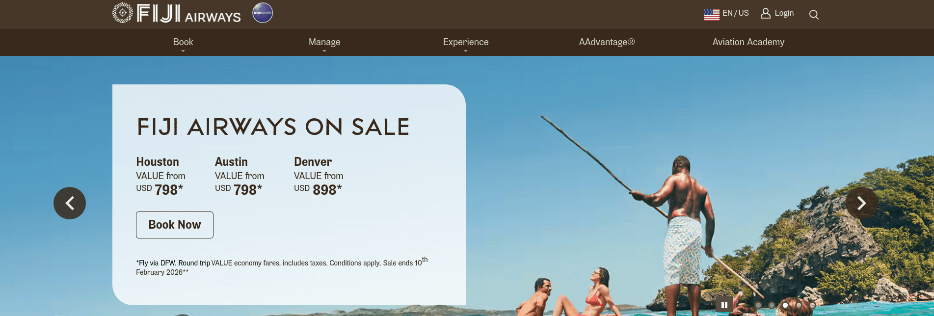 Fiji Airways, formerly Air Pacific, is the flag carrier of Fiji. It operates international services from its hubs in Fiji to 27 destinations, and has an extended network of 108 international destinations through its codeshare partners, including Qantas, who also own a stake in the airline. The airline is a member of the Oneworld alliance.