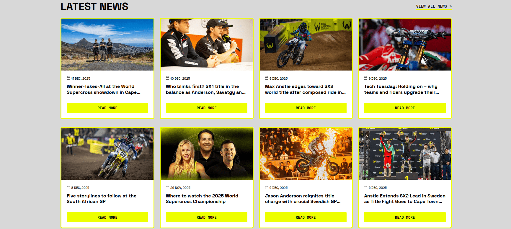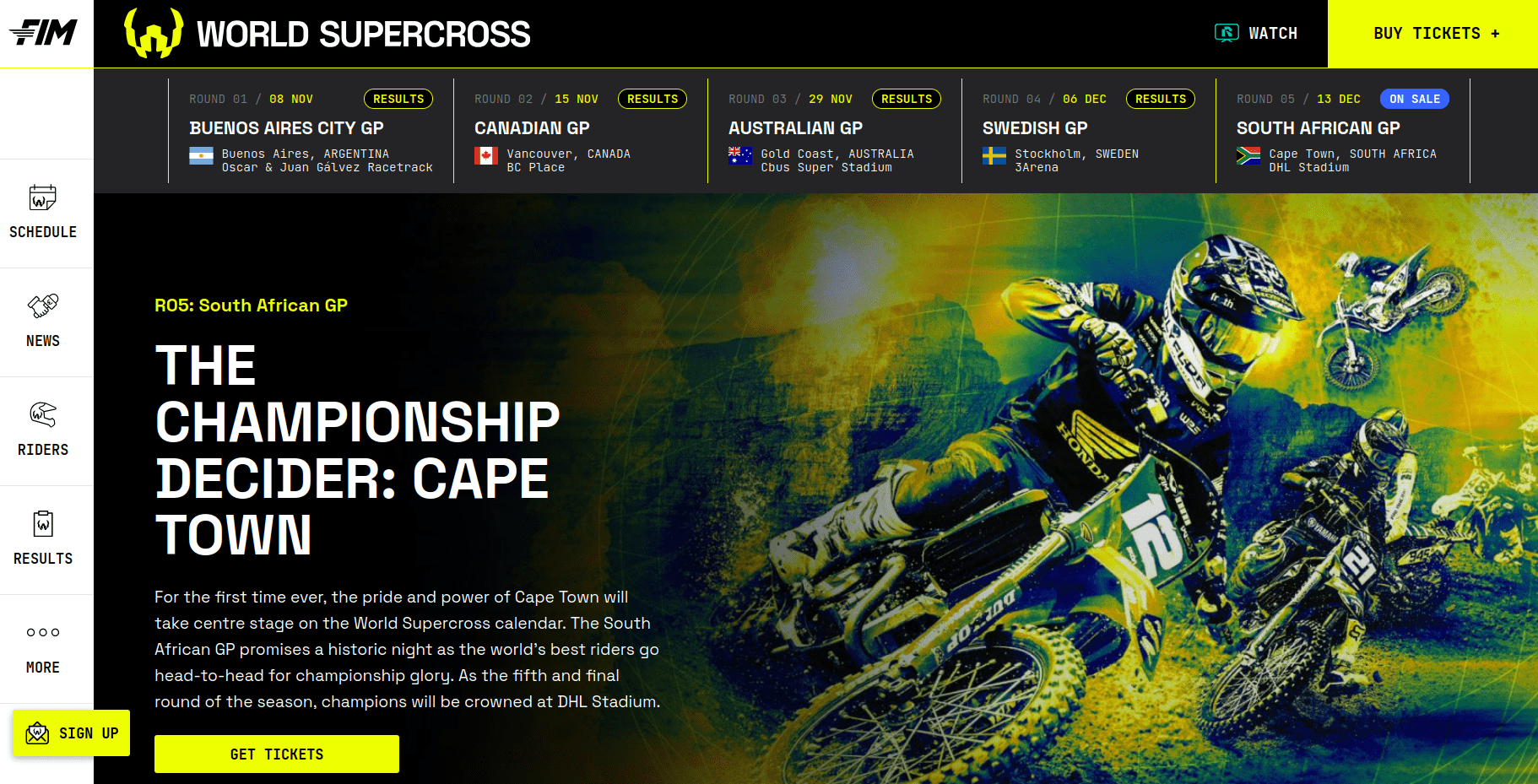 The FIM Supercross World Championship is the premier championship for international stadium supercross racing. It is organized by the Fédération Internationale de Motocyclisme (FIM), the global governing body of motorcycle racing. 2025-12-11
