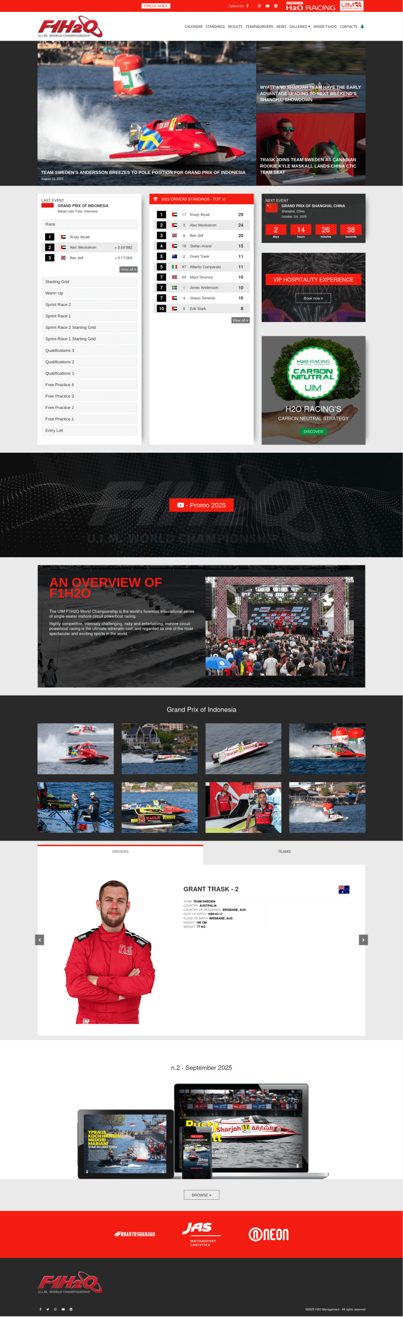 The Formula 1 Powerboat World Championship (also F1) is an international motorboat racing competition for powerboats organised by the Union Internationale Motonautique (UIM) and promoted by H2O Racing, hence it often being referred to as F1H2O. It is the highest class of inshore powerboat racing in the world, and as such, with it sharing the title of F1, is similar to Formula One car racing. Each race lasts approximately 45 minutes following a circuit marked out in a selected stretch of water, usually a lake, river, dock, or sheltered bay.