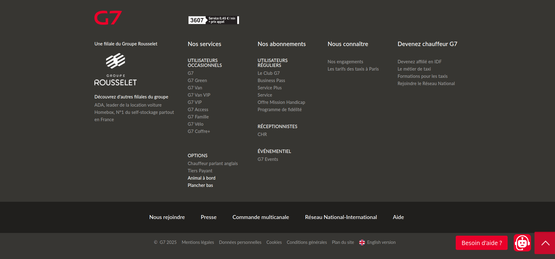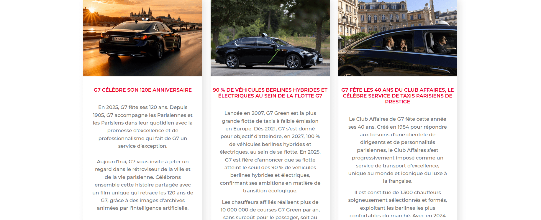 G7 (anciennement Taxis G7) est une compagnie de taxis parisiens créée en 1905. Ce nom fait référence au garage numéro 7 (G7) se situant à Saint-Ouen, devenu l’immatriculation officielle, se terminant par un G (garage) et un 7 (N°), enregistré par la préfecture de Police de Paris.