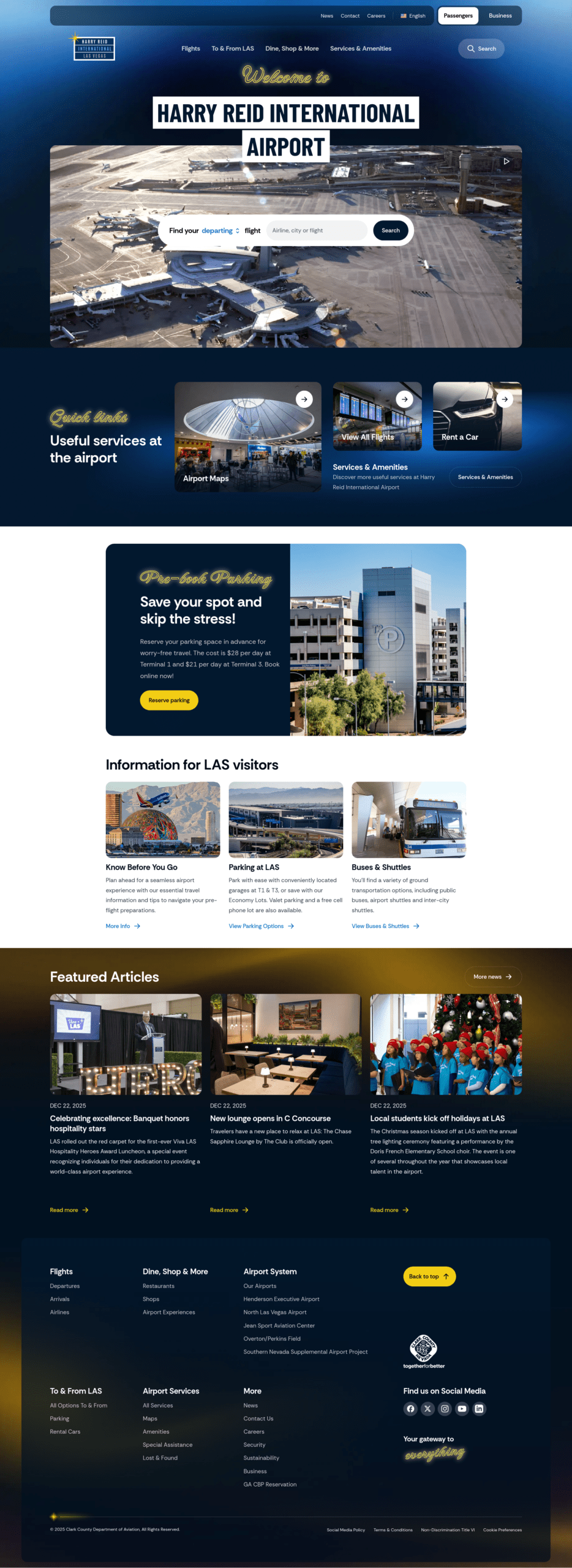 Harry Reid International Airport (IATA: LAS, ICAO: KLAS, FAA LID: LAS), until 2021 called McCarran International Airport, is the main gateway for international and domestic flights to the Las Vegas Valley, Nevada. It is located five miles (8 km; 4 nmi) south of downtown Las Vegas, in the unincorporated area of Paradise, and covers 2,800 acres (4.4 sq mi; 11.3 km2) of land.