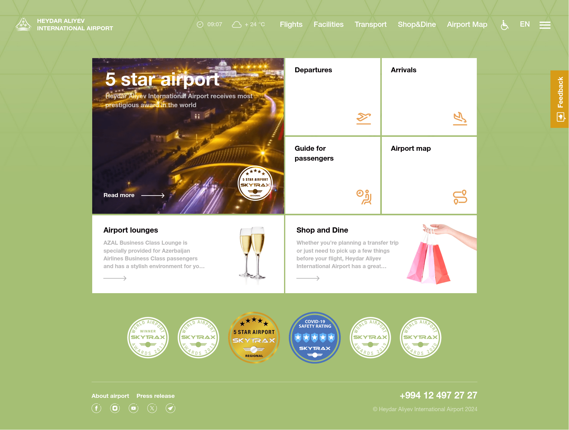 Heydar Aliyev International Airport (Azerbaijani: Heydar Aliyev adına Beynəlxalq Hava Limanı) (IATA: GYD, ICAO: UBBB) is one of the seven international airports serving Azerbaijan. Heydar Aliyev International Airport is the busiest airport both in Azerbaijan and in the South Caucasus as well as one of the busiest in the post-Soviet countries. Formerly, it was called Bina International Airport, after a suburb of the Azerbaijan capital Baku.
