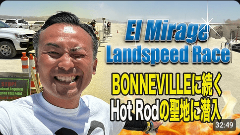 MOONEYES Chatter-Rod, aka C-Rod Matsui, was taken by Chico from MOONEYES USA to his long-awaited Dream Place El Mirage! He was as excited as a kid at a theme park. In this video, we take a look at the Land Speed Race, where hot rods and other machines compete on Dry Lake. C-Rod picks out vehicles that caught his eye, both cars and bikes, and explains the key points.