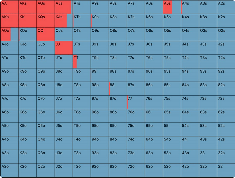 If we were to consult solved preflop ranges for the above scenario, what would we find?