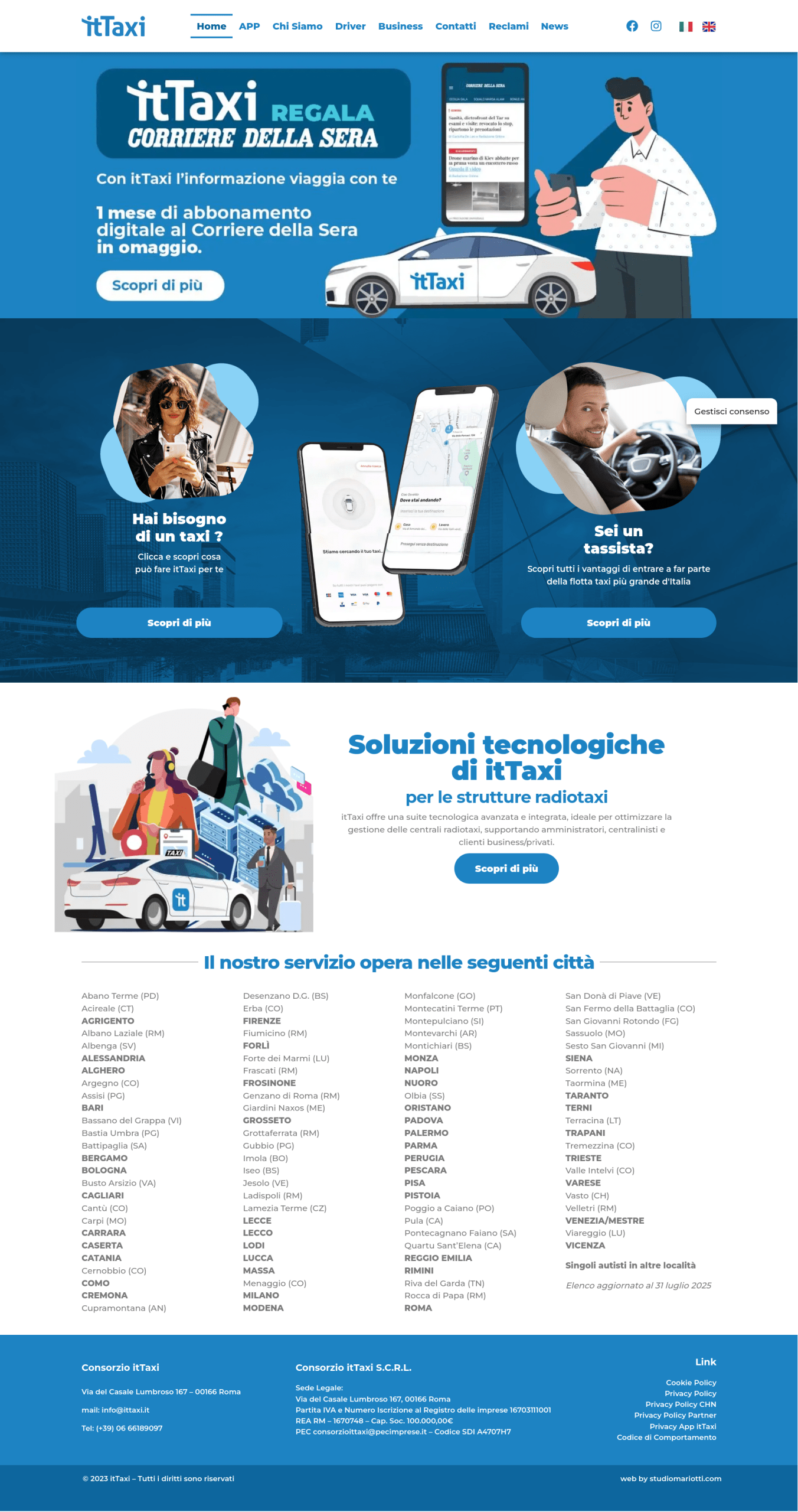 ItTaxi offre una suite tecnologica avanzata e integrata, ideale per ottimizzare la gestione delle centrali radiotaxi, supportando amministratori, centralinisti e clienti business/privati. 2025-10-07