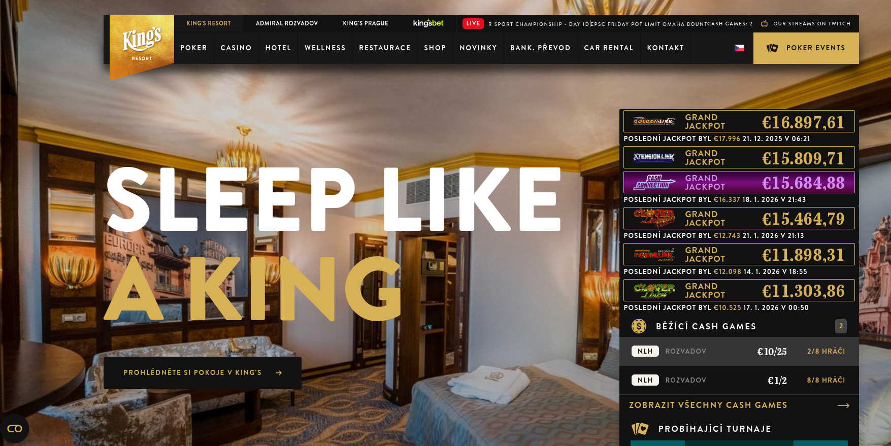 King’s Resort is a casino and resort located in Rozvadov, Czech Republic. The casino currently houses the largest poker room in Europe. 2026-01-23