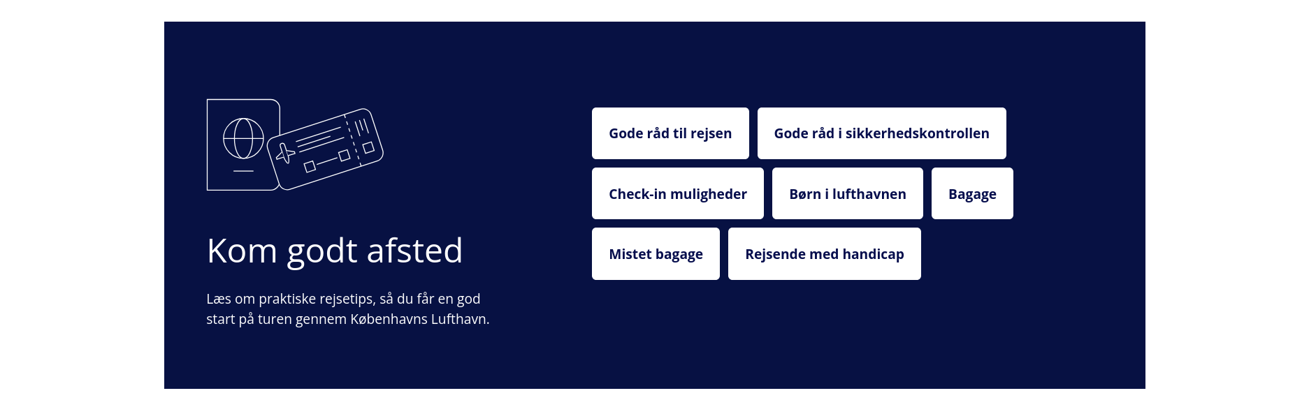 Københavns Lufthavn, Kastrup (IATA: CPH, ICAO: EKCH) er den største lufthavn i Danmark. Takket være sine mange internationale ruter servicerer den foruden København, Sjælland og Øresundsregionen også store dele af Sydsverige.