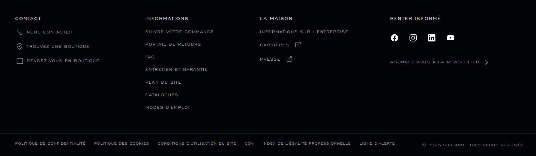 Le Petit-Fils de L.-U. Chopard & Cie S.A., commonly known as Chopard, is a Swiss manufacturer and retailer of luxury watches, jewellery and accessories. Founded in 1860 by Louis-Ulysse Chopard in Sonvilier, Switzerland, Chopard has been owned by the Scheufele family of Germany since 1963.