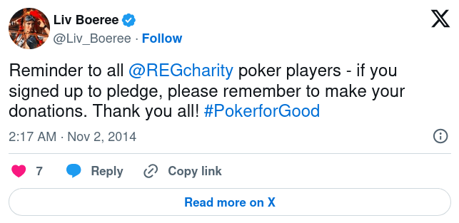 Beyond that sponsorship, Boeree co-founded Raising for Effective Giving (REG) in 2014 with Igor Kurganov (GTO poker phenom). Together, they built it into an organisation that has directed over $14 million to charity.