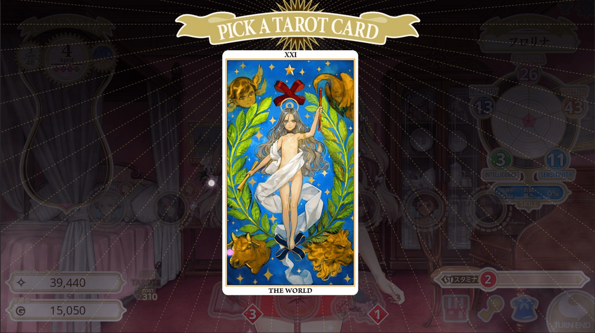 ゲーム中で溜まる「インスピレーション」を使用してタロットを引くことができます。それぞれのタロットにはいろんな効果が設定されているので、上手く使ってゲームを有利に進めることが可能です。