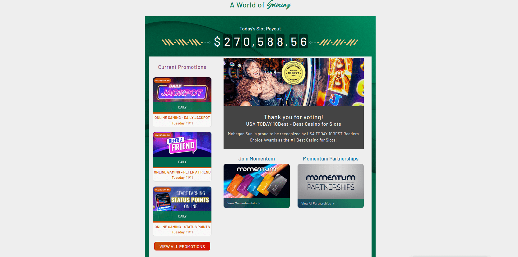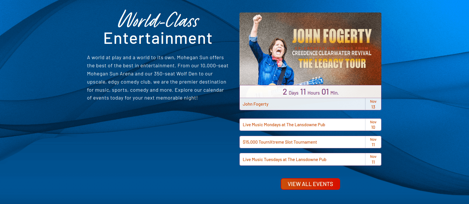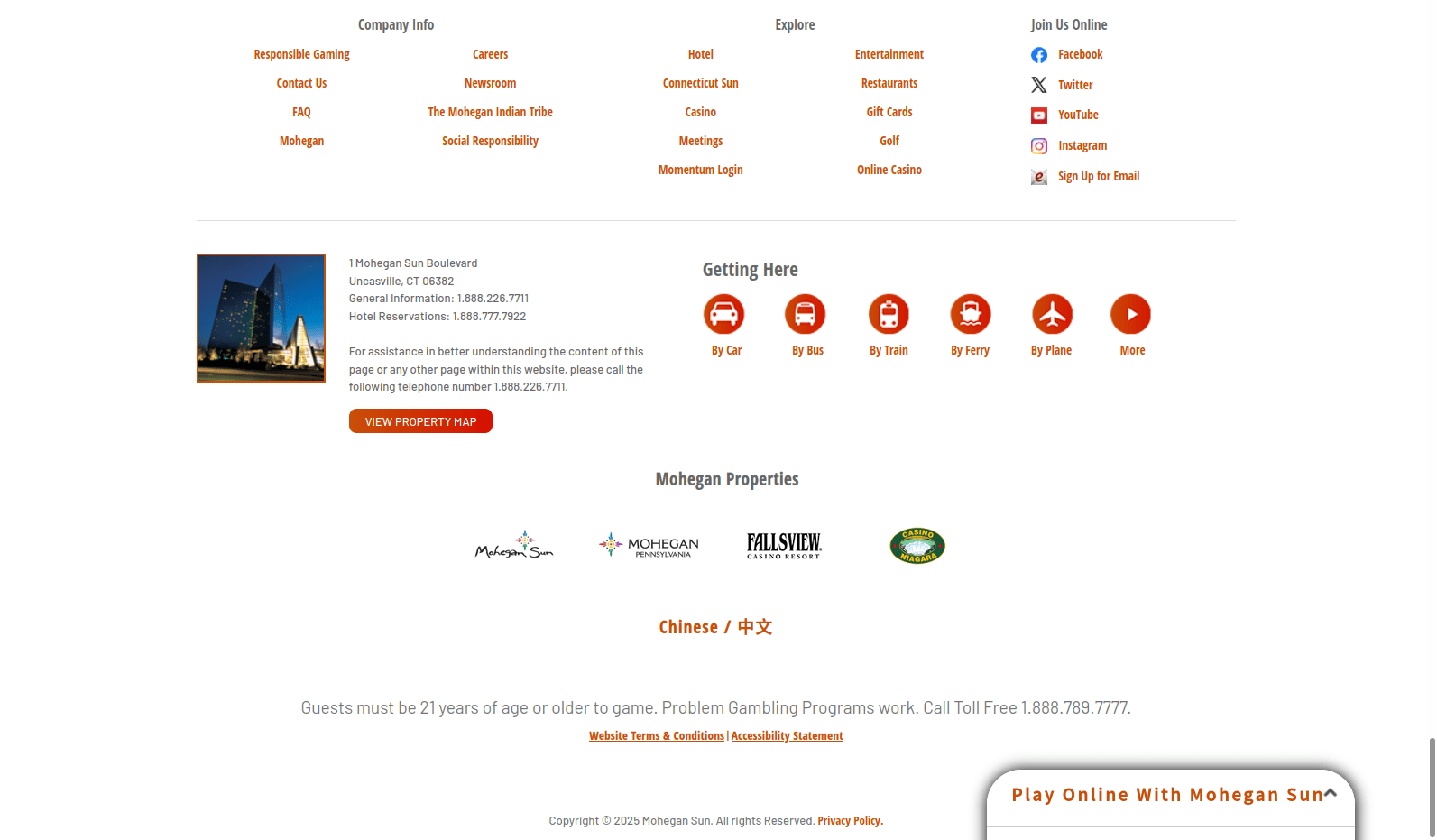 Mohegan Sun is a large casino and entertainment complex located on 240 acres (97 ha) of the Mohegan Indian Reservation in Uncasville, Connecticut, along the banks of the Thames River. It is owned and operated by the federally recognized Mohegan Tribe. The resort first opened on October 12, 1996 and has since become one of the largest casinos in the United States by gaming space.