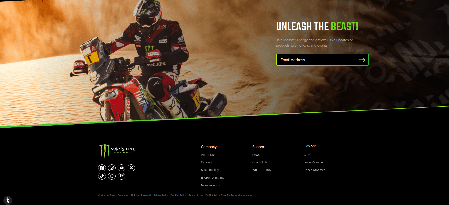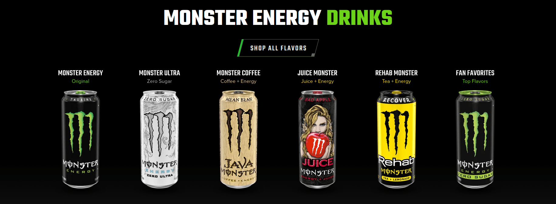 Monster Energy is a brand of energy drinks that was created by Hansen Natural Company (now Monster Beverage Corporation) in April 2002 and released to the public with its original flavor on April 18, 2002. In 2022, Monster Energy had a 30.1% share of the American energy drink market, the second-highest after Red Bull.