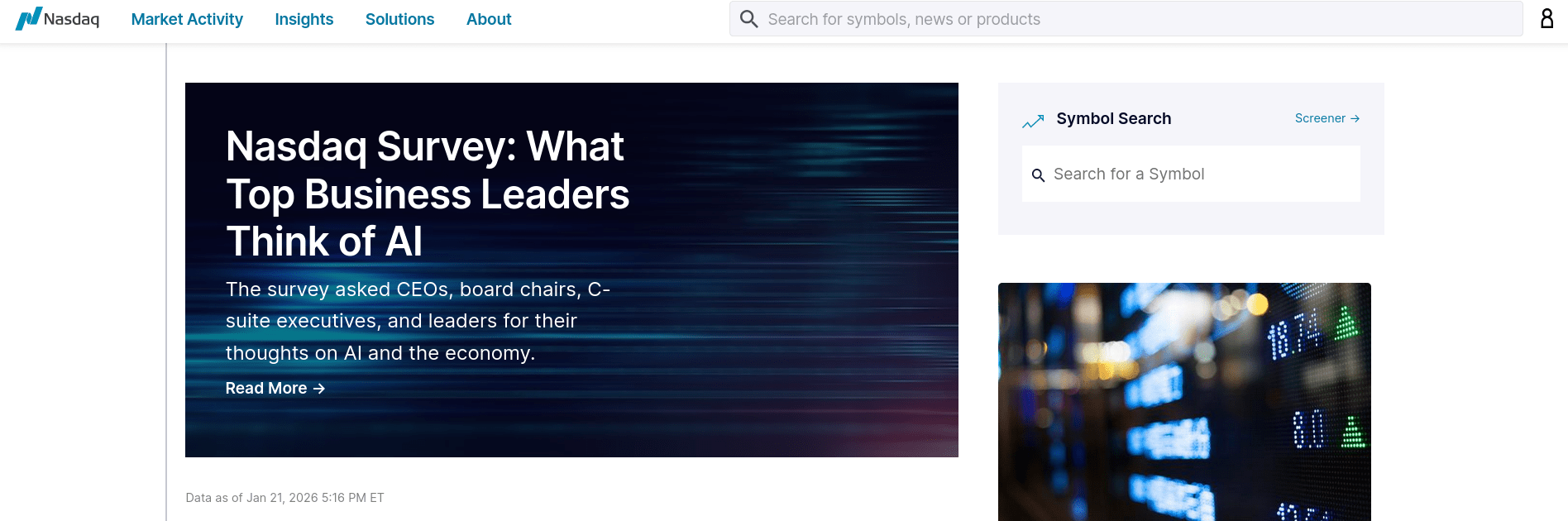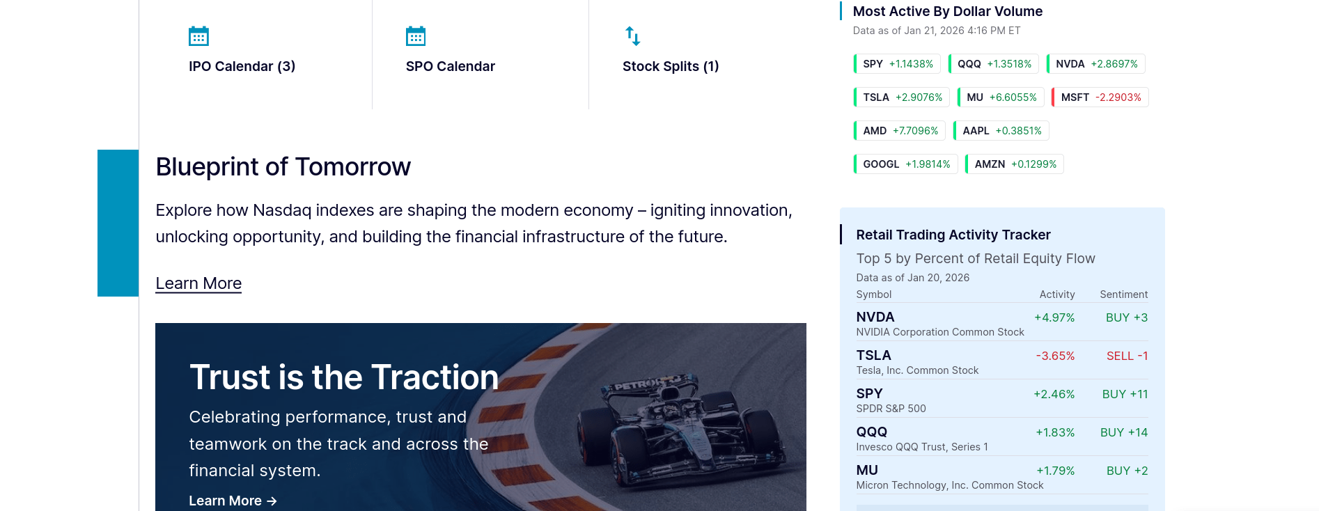 The Nasdaq Composite (ticker symbol ^IXIC) is a stock market index that includes almost all stocks listed on the Nasdaq stock exchange. Along with the Dow Jones Industrial Average and S&P 500, it is one of the three most-followed stock market indices in the United States. The composition of the NASDAQ Composite is heavily weighted towards companies in the information technology sector. The Nasdaq-100, which includes 100 of the largest non-financial companies in the Nasdaq Composite, accounts for about 80% of the index weighting of the Nasdaq Composite.