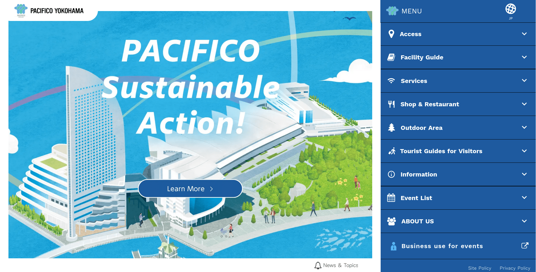 PACIFICO Yokohama, which is located in the waterfront area of the Minato Mirai 21 district, a new town in Yokohama, is one of the largest convention complexes in the world.