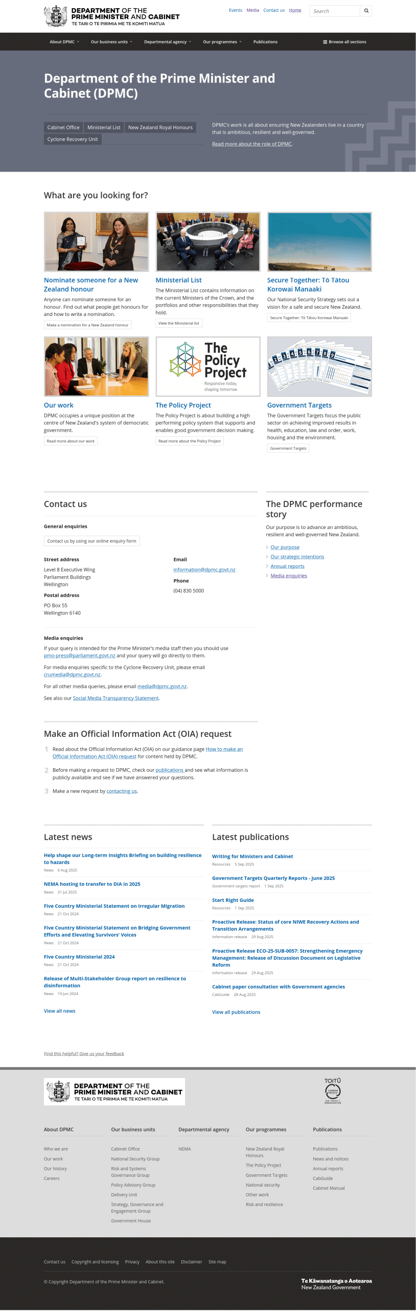 The prime minister (informally abbreviated to PM) ranks as the most senior government minister. They are responsible for chairing meetings of Cabinet; allocating posts to ministers within the government; acting as the spokesperson for the government; and providing advice to the sovereign or the sovereign’s representative, the governor-general. They also have ministerial responsibility for the Department of the Prime Minister and Cabinet, which is based in the Beehive in Wellington.
