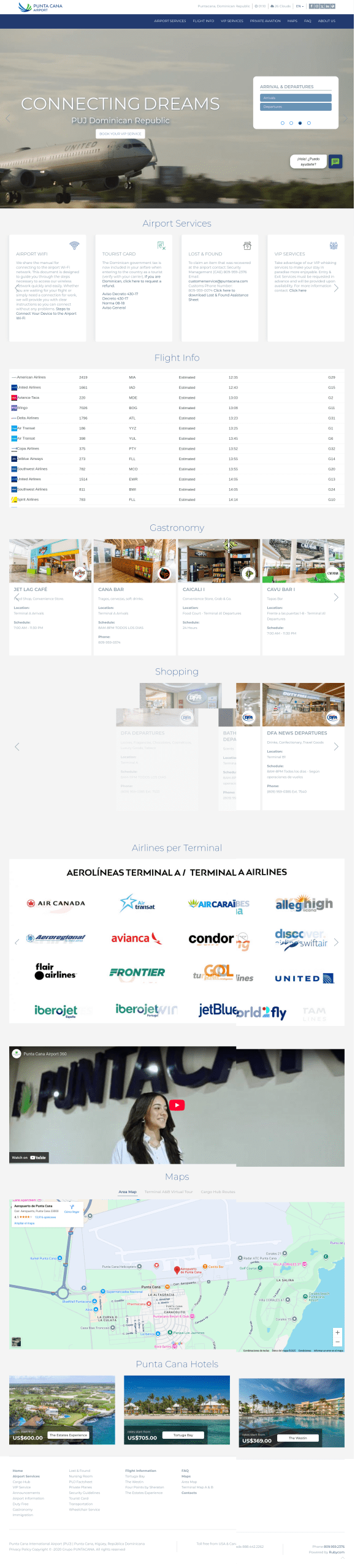 Punta Cana International Airport (IATA: PUJ, ICAO: MDPC) is a privately owned commercial airport in Punta Cana, eastern Dominican Republic. The airport was built with open-air terminals and roofs covered in palm fronds. Grupo Puntacana built the airport, which was designed by architect Oscar Imbert, and inaugurated it in December 1983. It is owned by Grupo Puntacana and became the first privately owned international airport in the world.